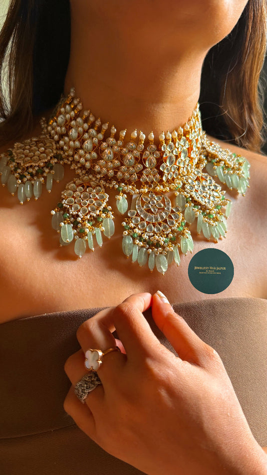Paachi Heritage Polki paachi kundan with mint drop rajwada set