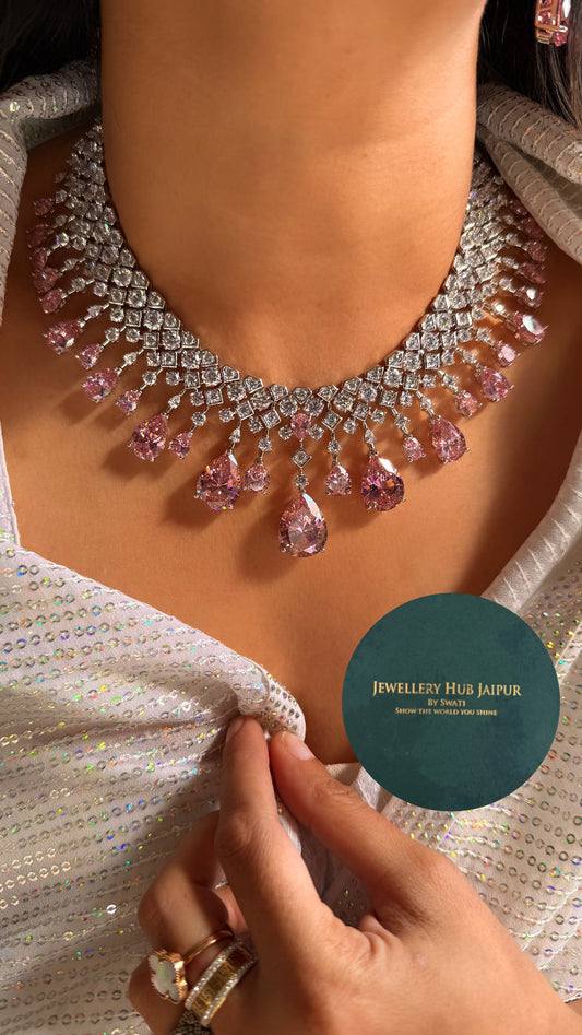 Rani pink & Moissanite choker necklace, set with teardrop detailing