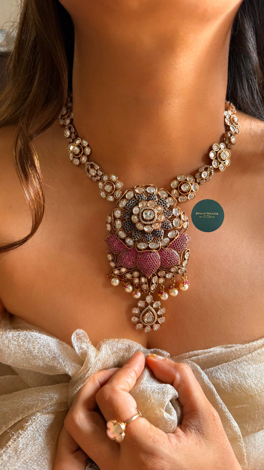 Rani pink floral real moissanite choker set