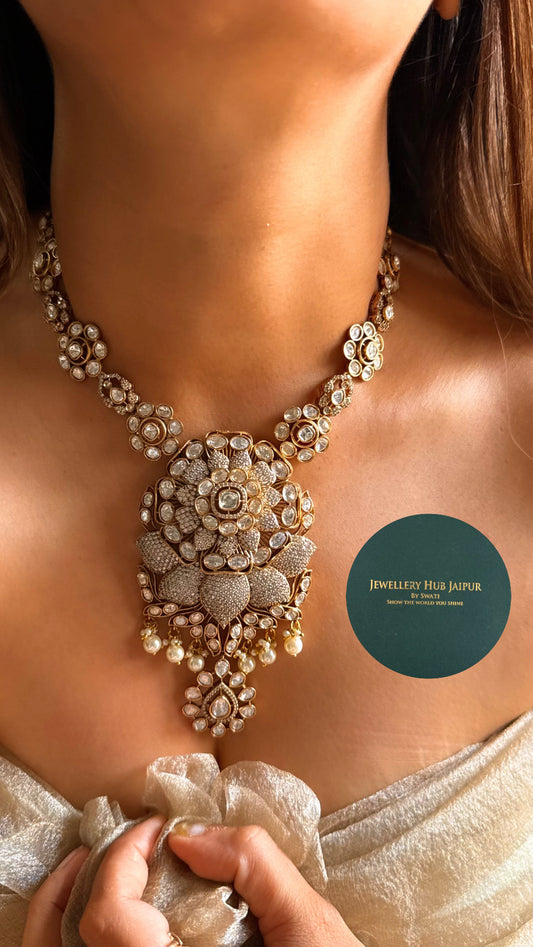 Real moissanite maharani heritage necklace set