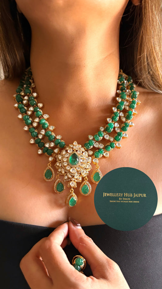 Moissanite polki dual layer collar set