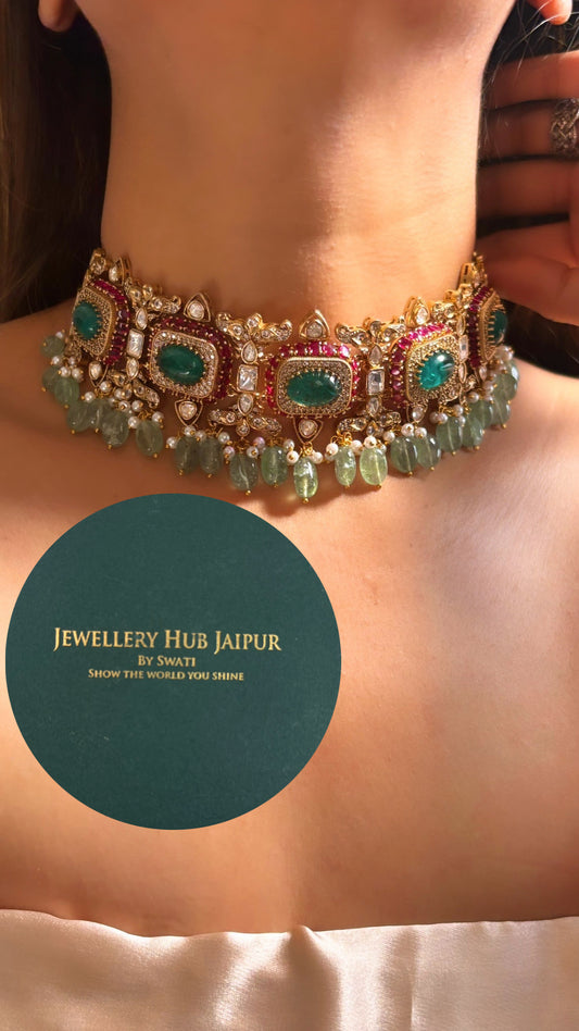 Bridal Asia Ruby mint and panna choker necklace set