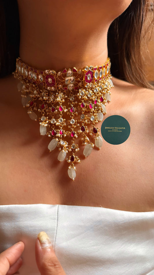 Gajj rani pink moissanite designer choker set