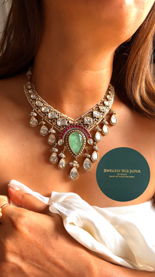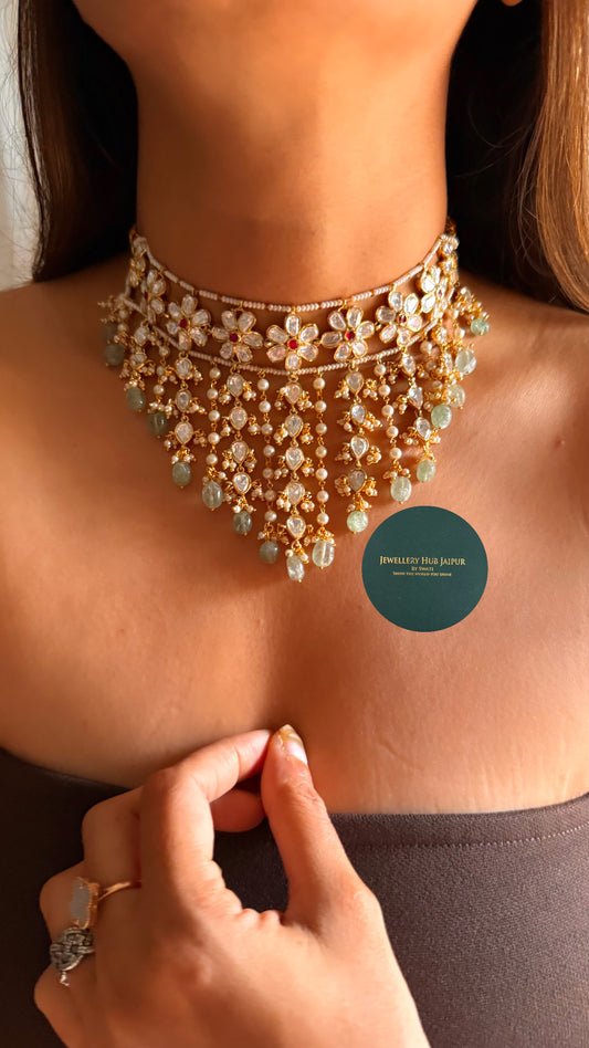 Real uncut moissanite polki & Sapphire stone collar set
