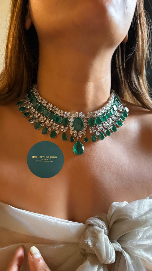 Emerald doublet cz diamond designer choker set