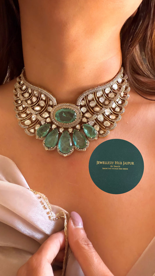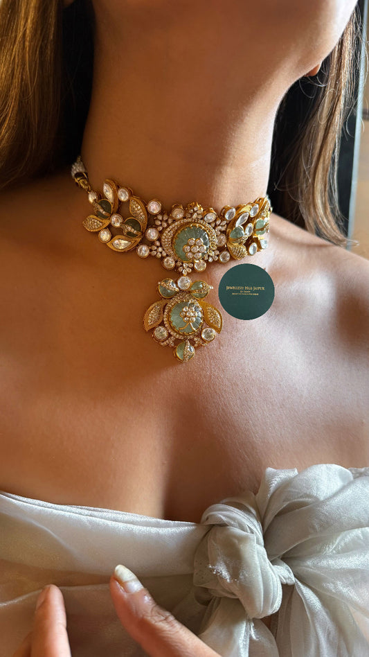 Kanakvaani Mint moissanite designer choker necklace set