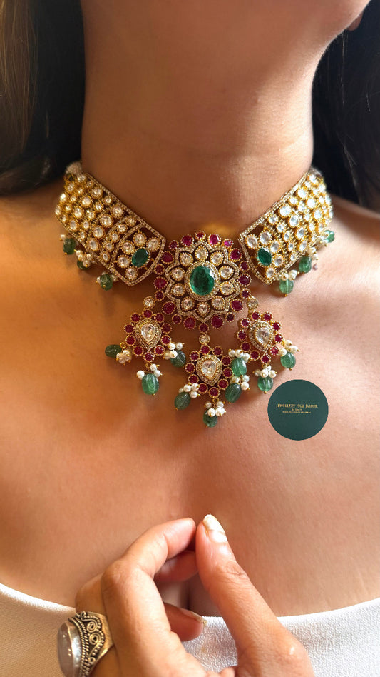 Emerald & ruby meenakari moissanite choker