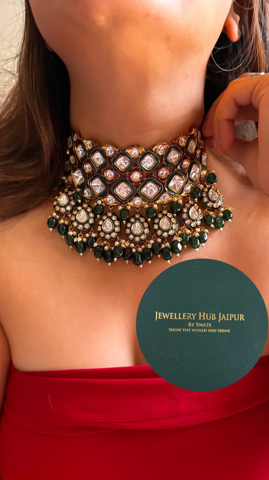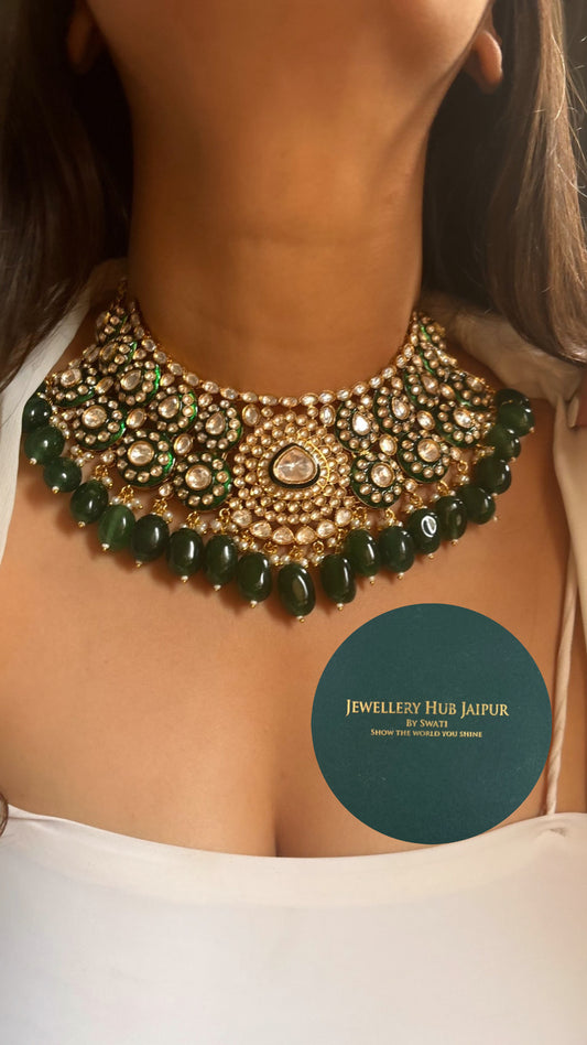 Emerald meenakari polki collar necklace set