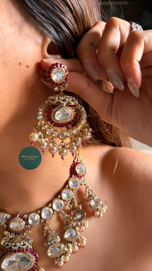 Tahira Moissanite paana ruby jhalar choker
