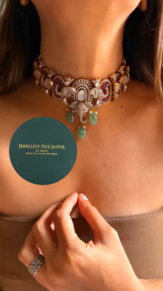 Mint doublet cz diamond designer choker set