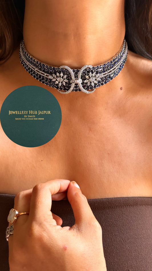 Amrapali inspired Natural stone rani pink moissanite dual layer collar set