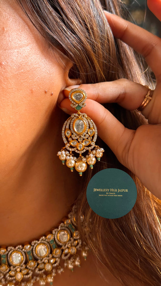Ruby & Emerald mint polki choker necklace with jhumkas