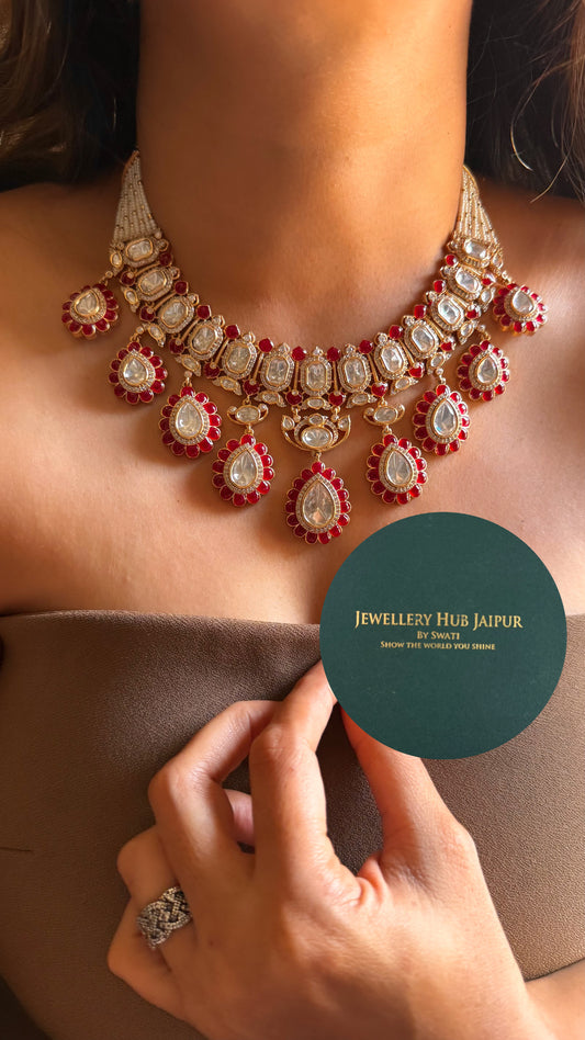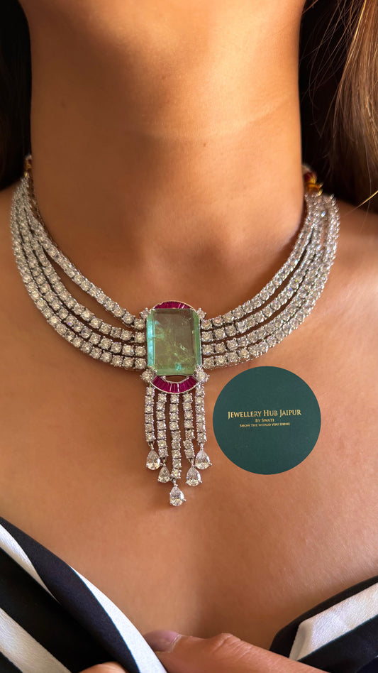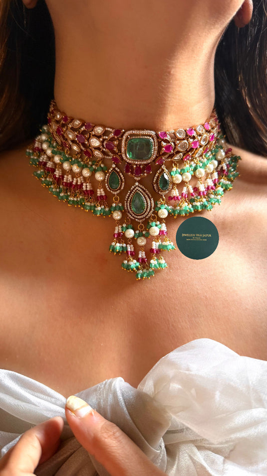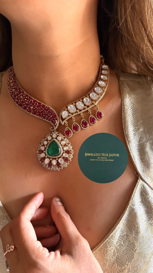 Bridal Asia Moissanite ruby & emerald choker