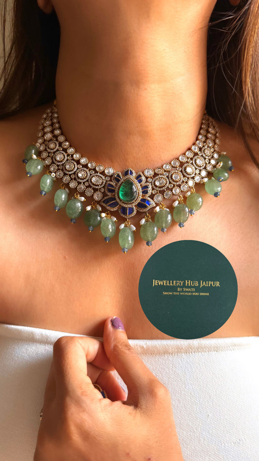 Mint doublet moissanite polki Victorian collar set