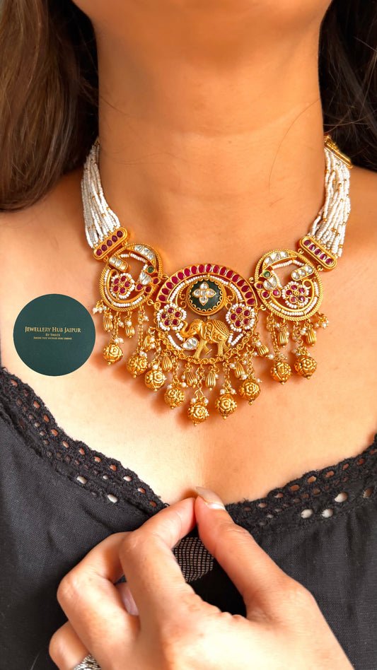 Heritage Rani pink & emerald real moissanite designer choker set