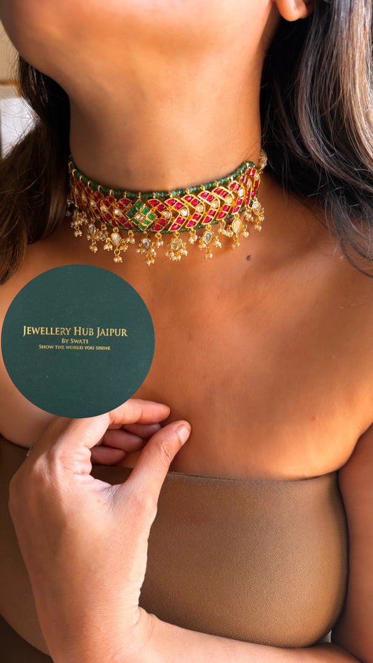 Emerald & rani pink katdana rajwada choker set