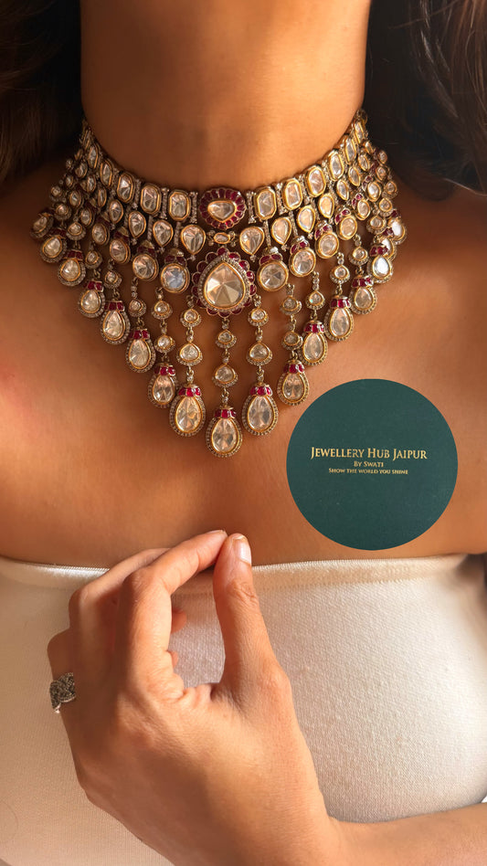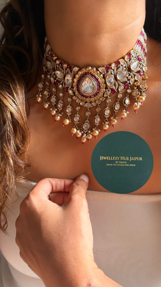 Rani pink katdana moissanite uncut polki Victorian choker set