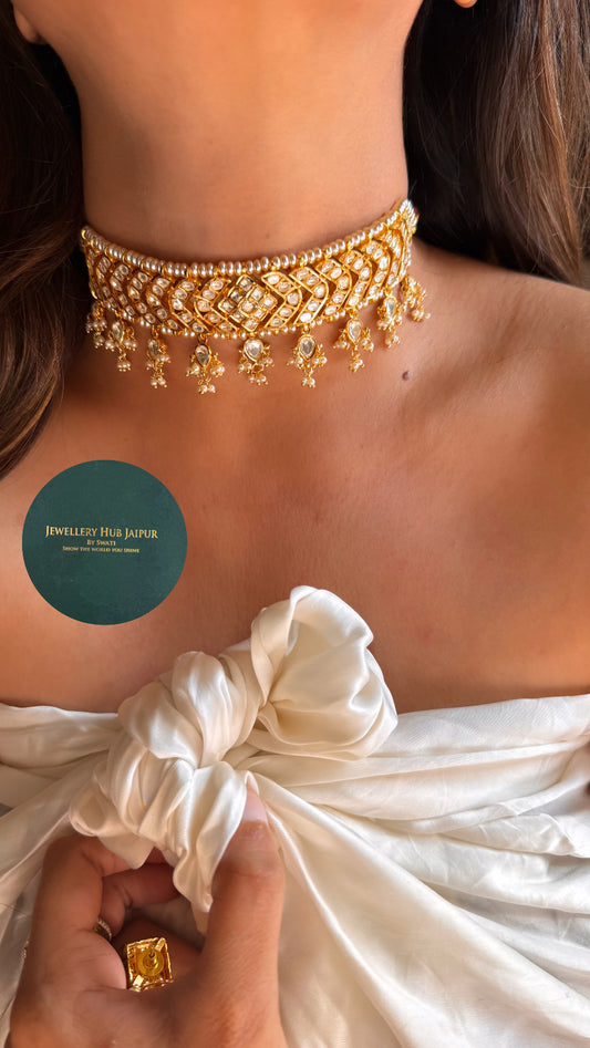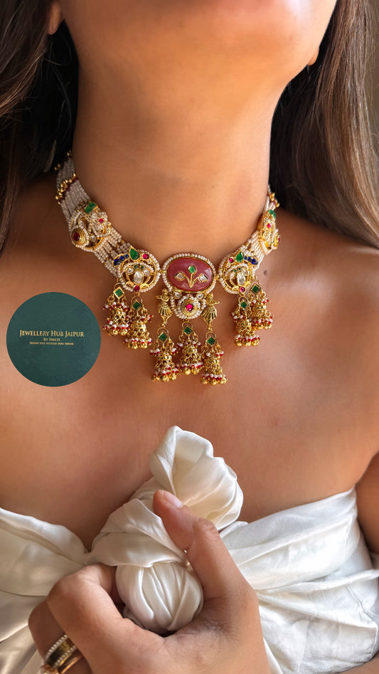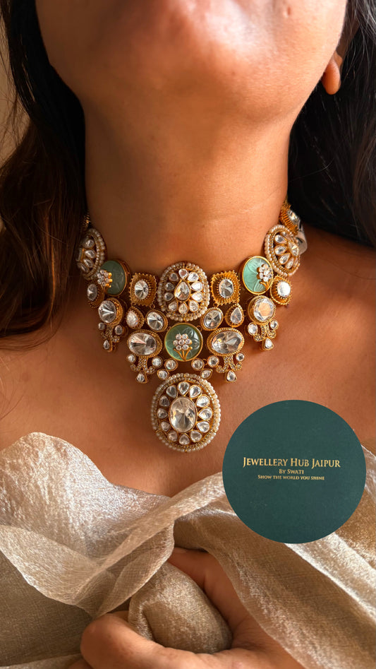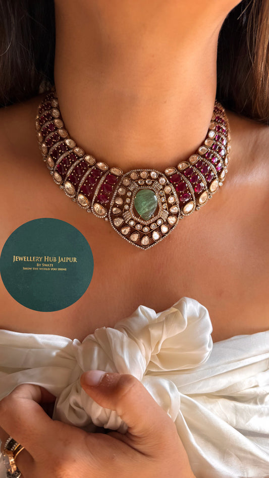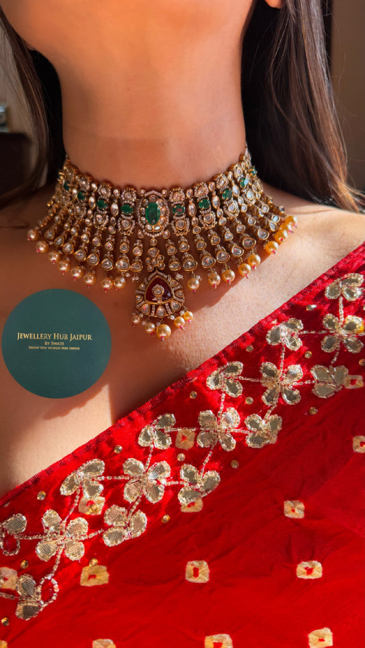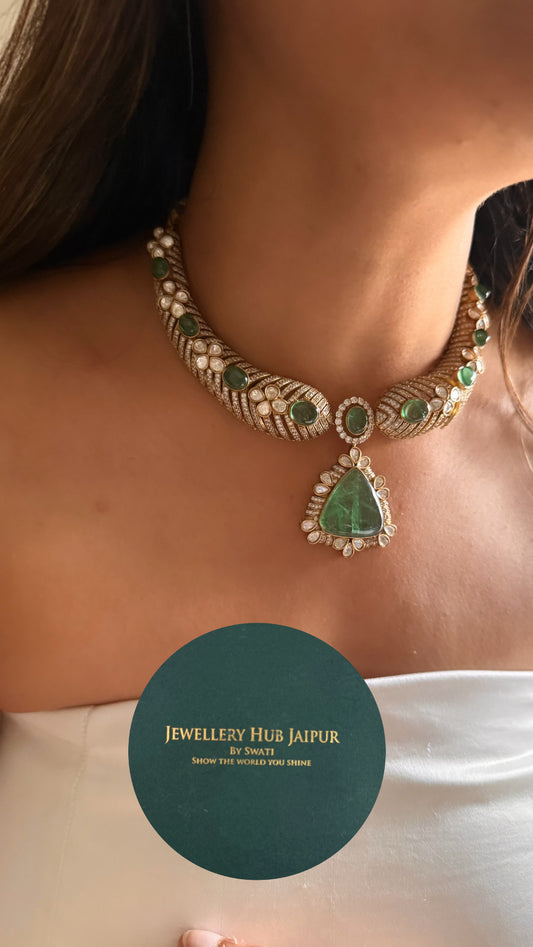 Heritage emerald handwork chandbali inspired choker with chandbali