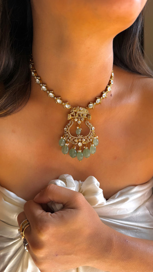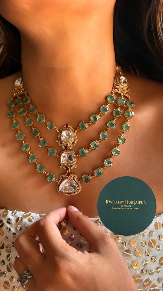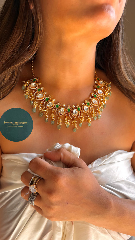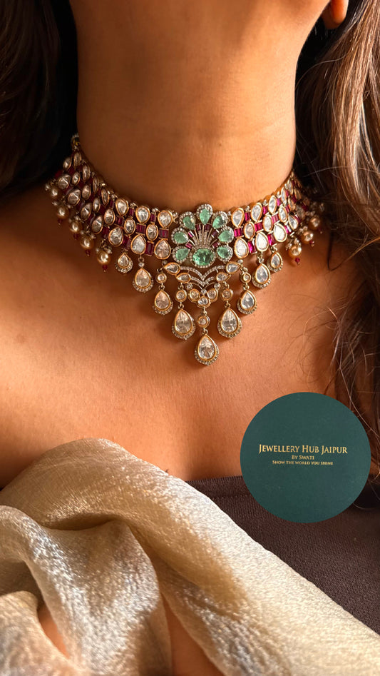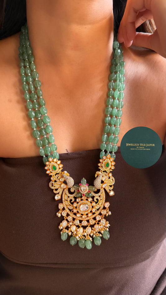 Real moissanite panna peacock inspired necklace with strawberry drops