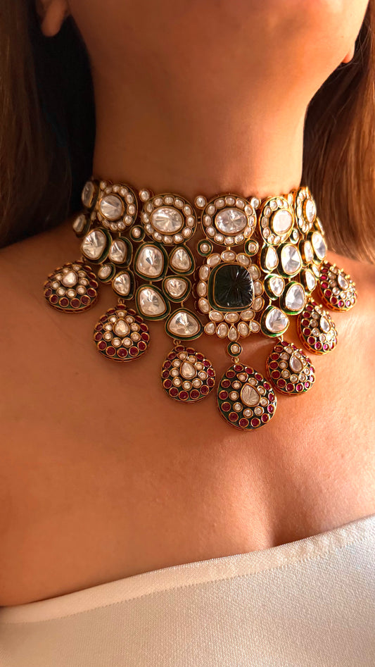 Shikha Emerald meenakari doublet & ruby polki choker