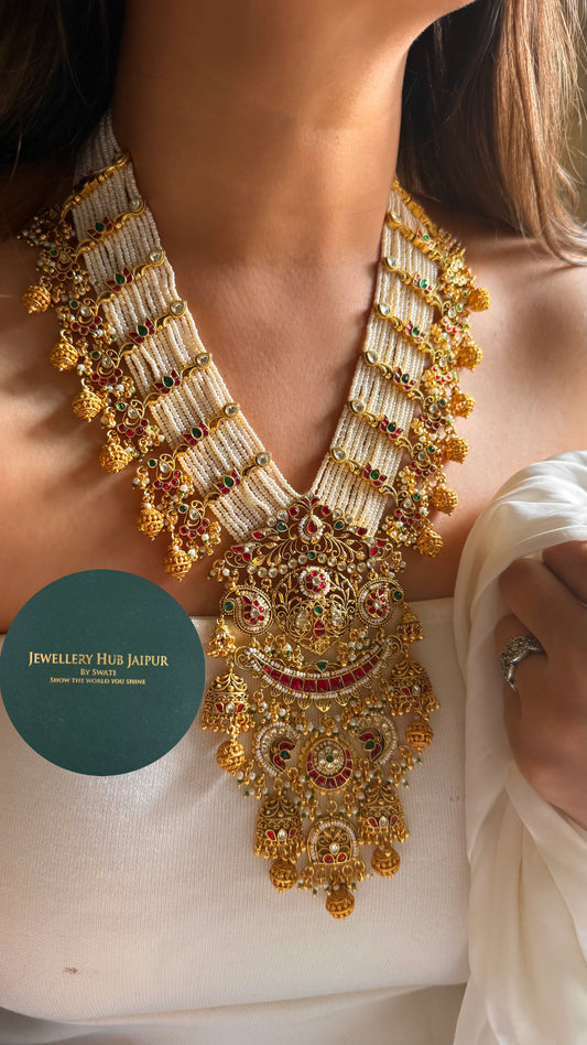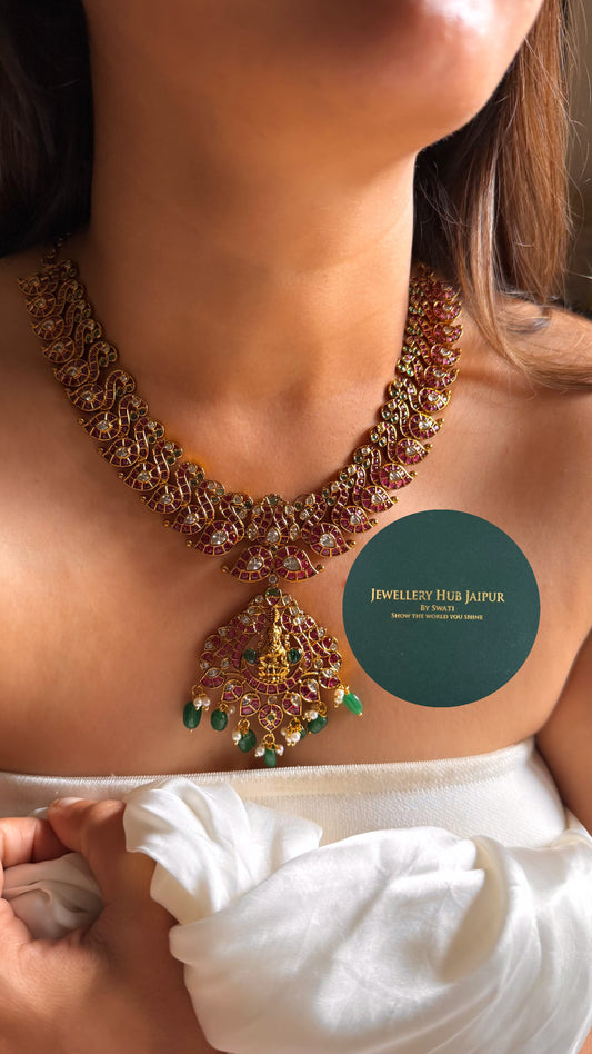 Real Moissanite Rajwada peacock Sapphire & ruby necklace