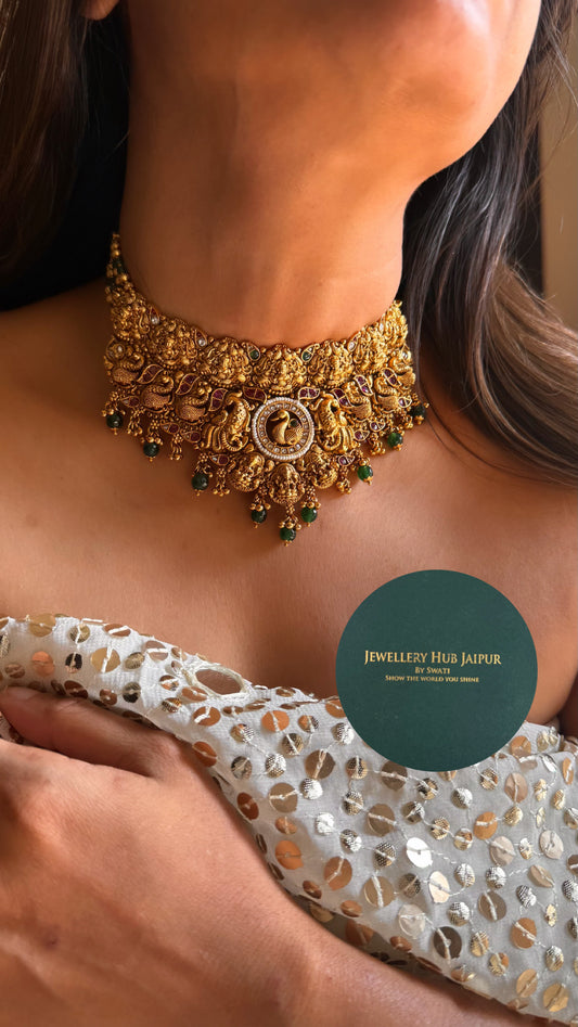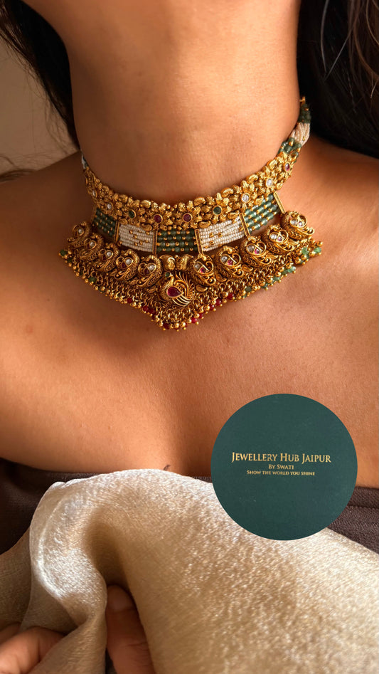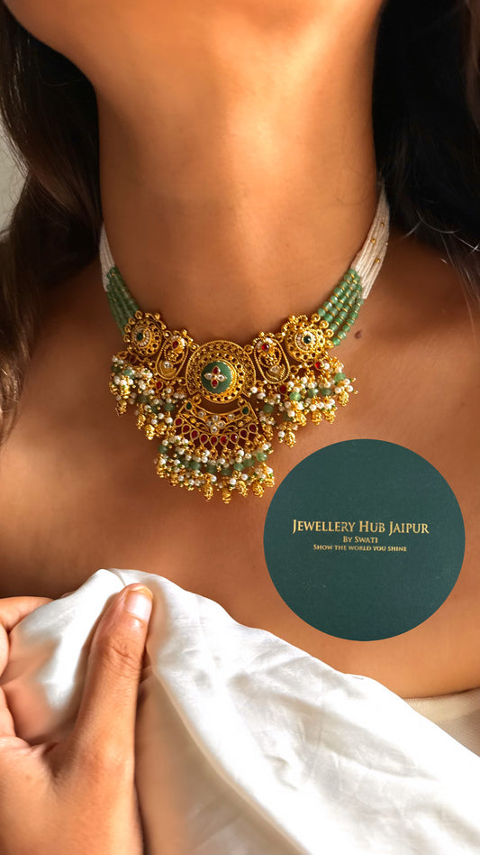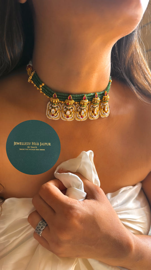 Heritage emerald handwork chandbali inspired choker with chandbali