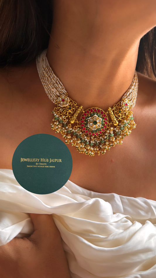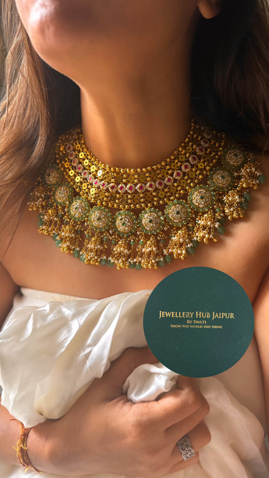 Real moissanite ruby & mint royal rajwada design heritage collar set