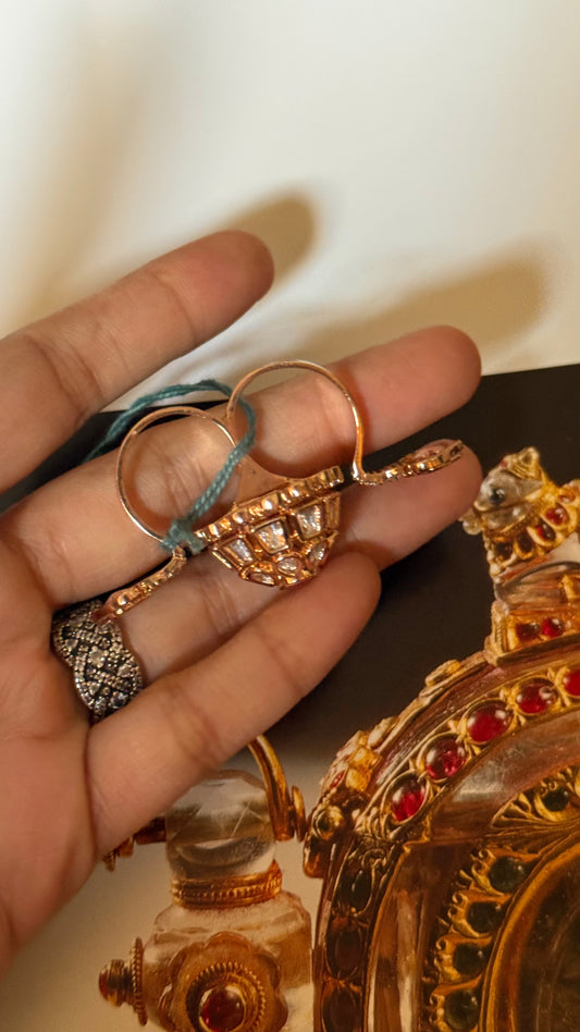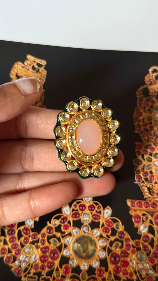 Peach moissanite uncut polki designer adjustable ring
