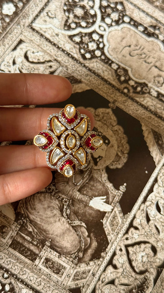 Moissanite polki floral adjustable ring