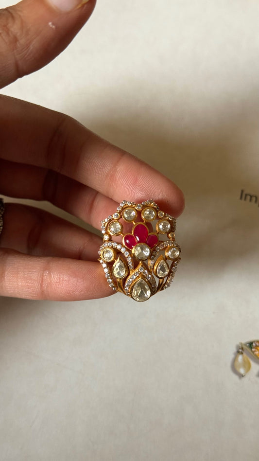 Ruby & meenakari paachi adjustable ring