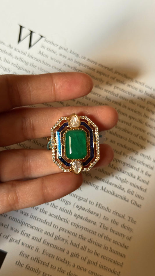 Emerald doublet & sapphire meenakari adjustable ring
