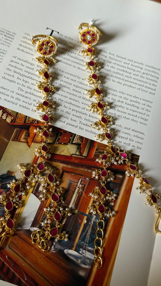 Emerald inlay & rani pink peacock rajwada adjustable ring