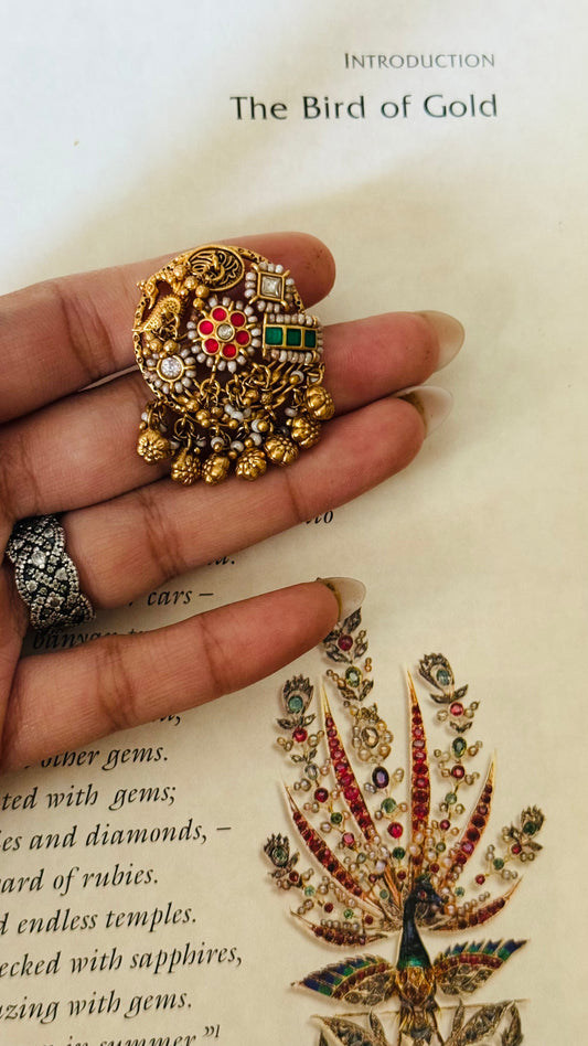 Amrapali inspired Real stones peacock inlay adjustable ring