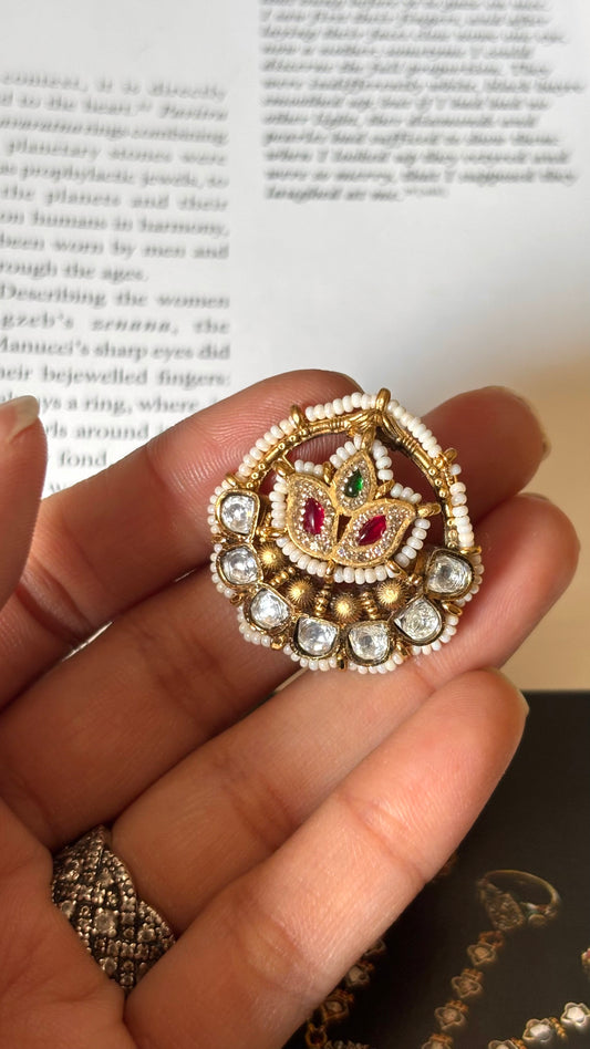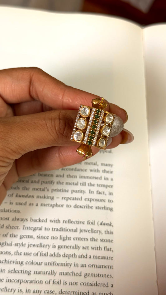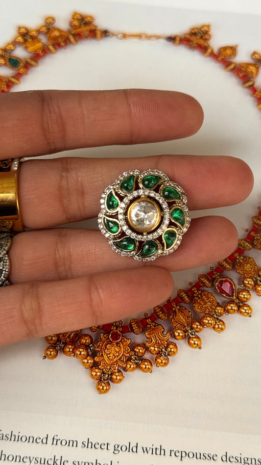 Leaf shaped paachi kundan heritage ring