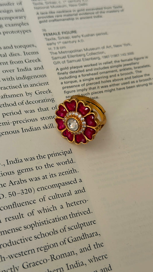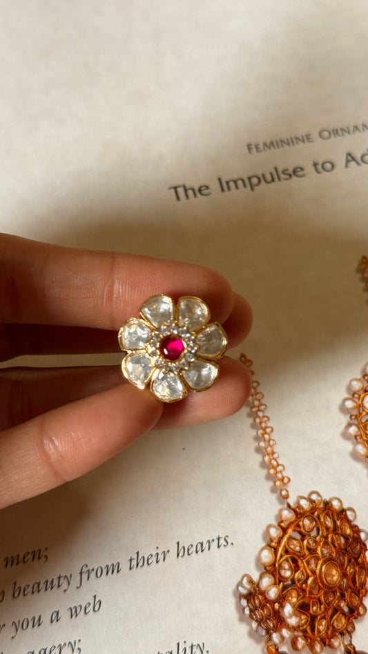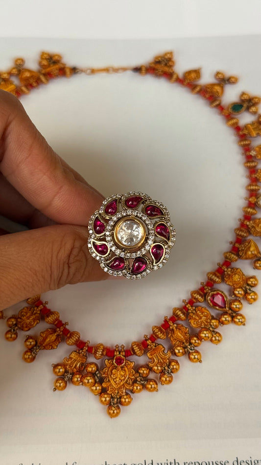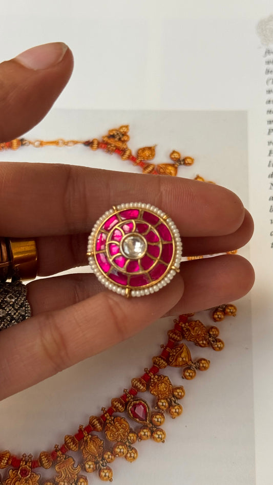 Rani pink paachi kundan heritage ring