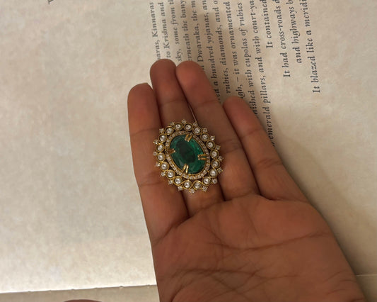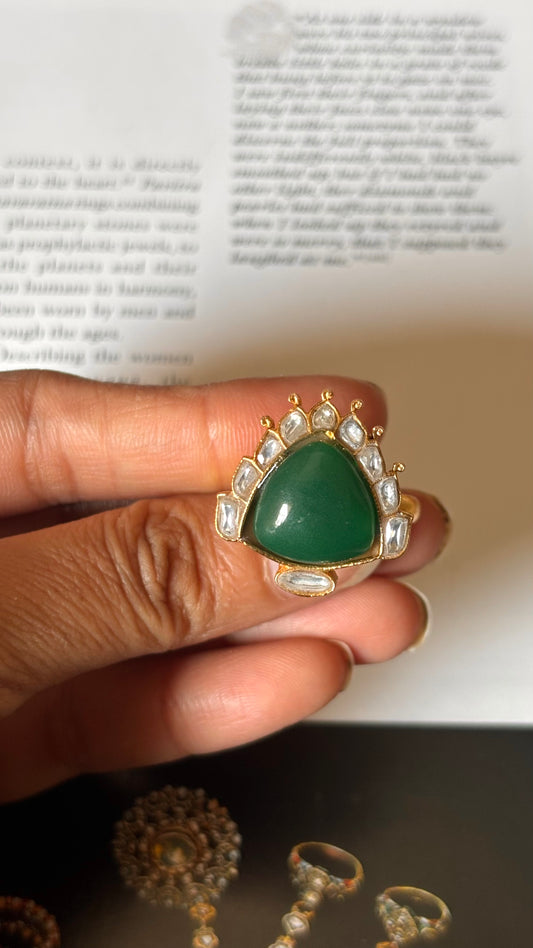 Emerald paachi kundan polki Ring