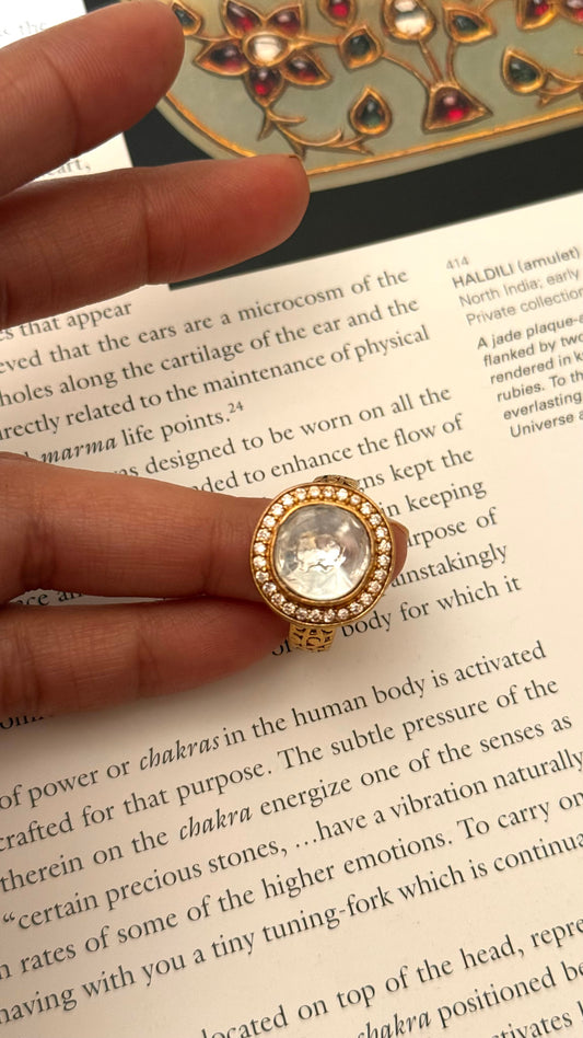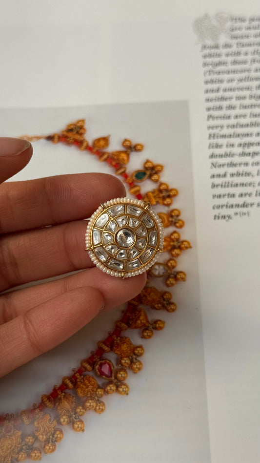 Paachi safed polki ring