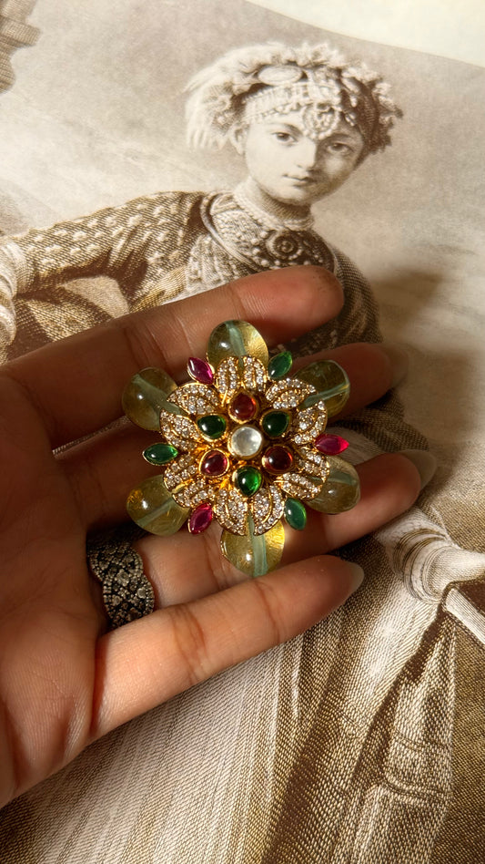 Peacock moissanite Polki adjustable ring