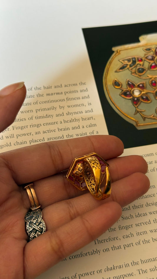 Ring ruby polki hexagone shape adjustable