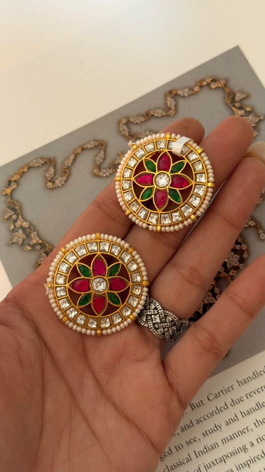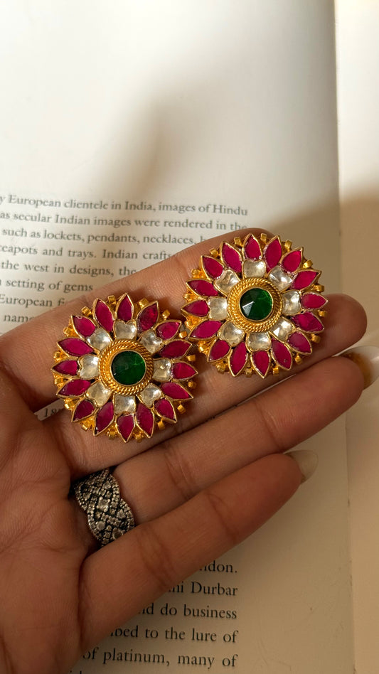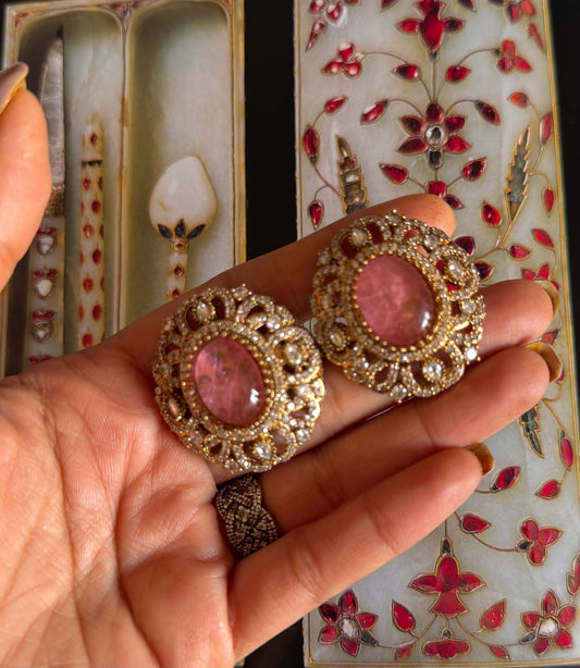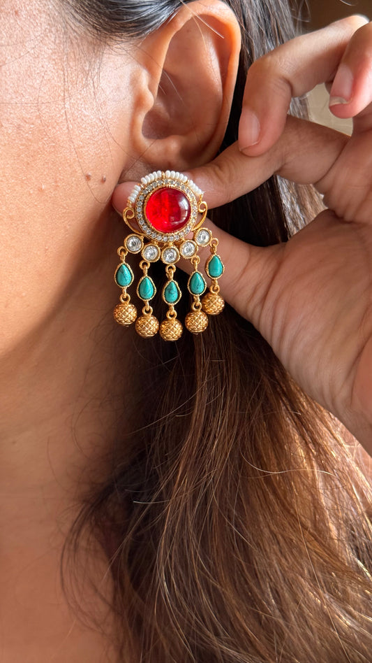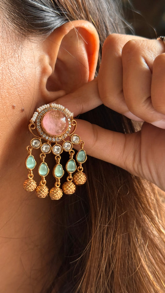Emerald doublet moissanite victorian floral with emerald drop studs