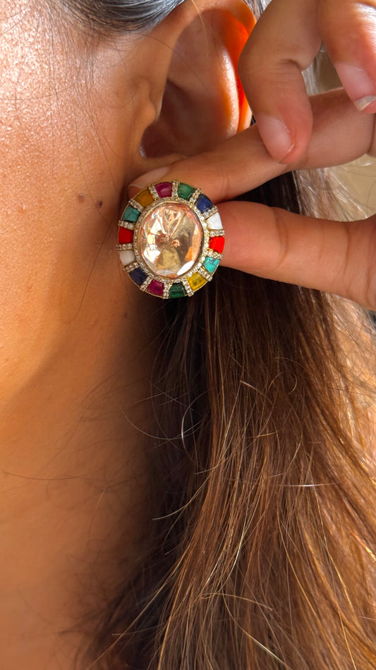 Saffron, mint & rose quartz doublet designer cocktail studs