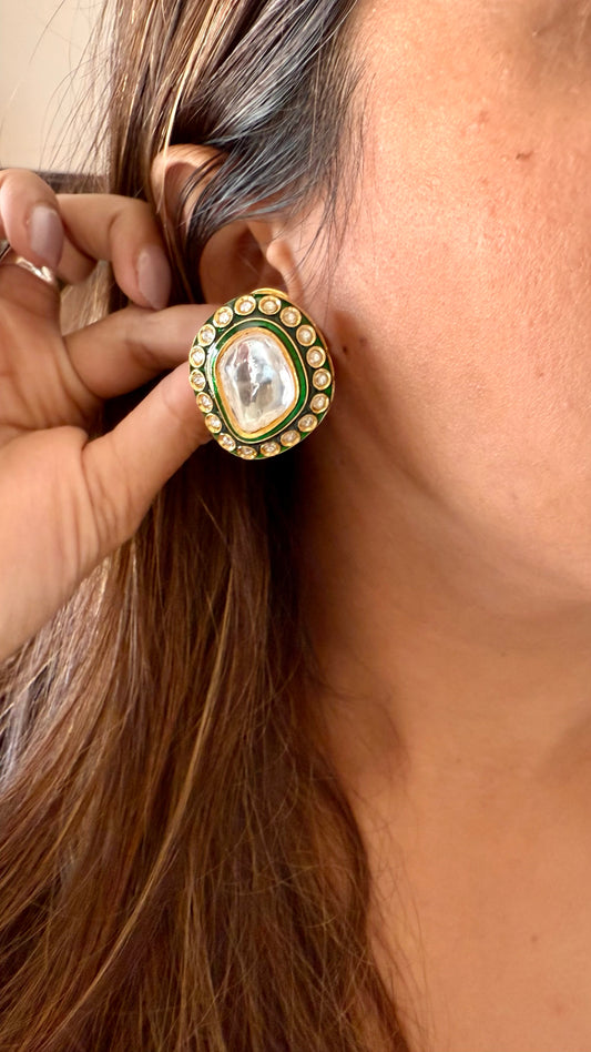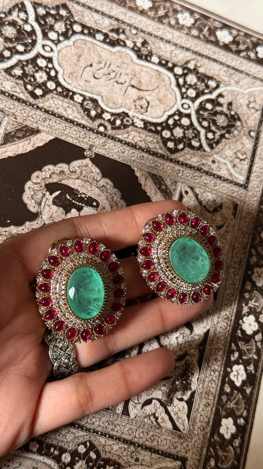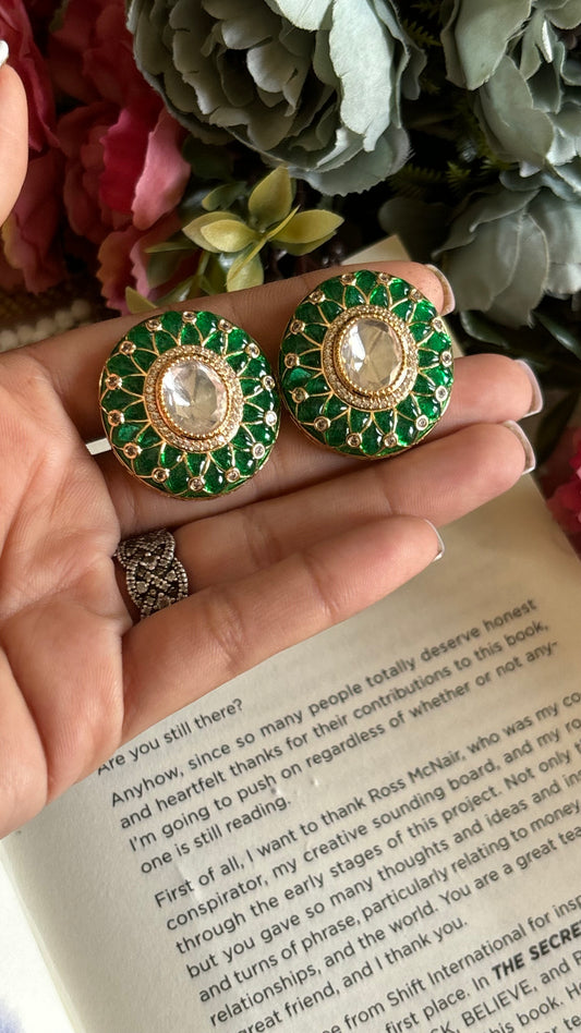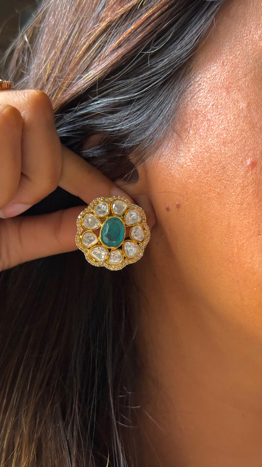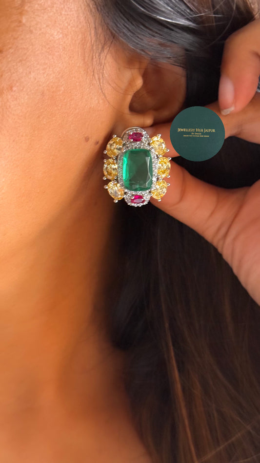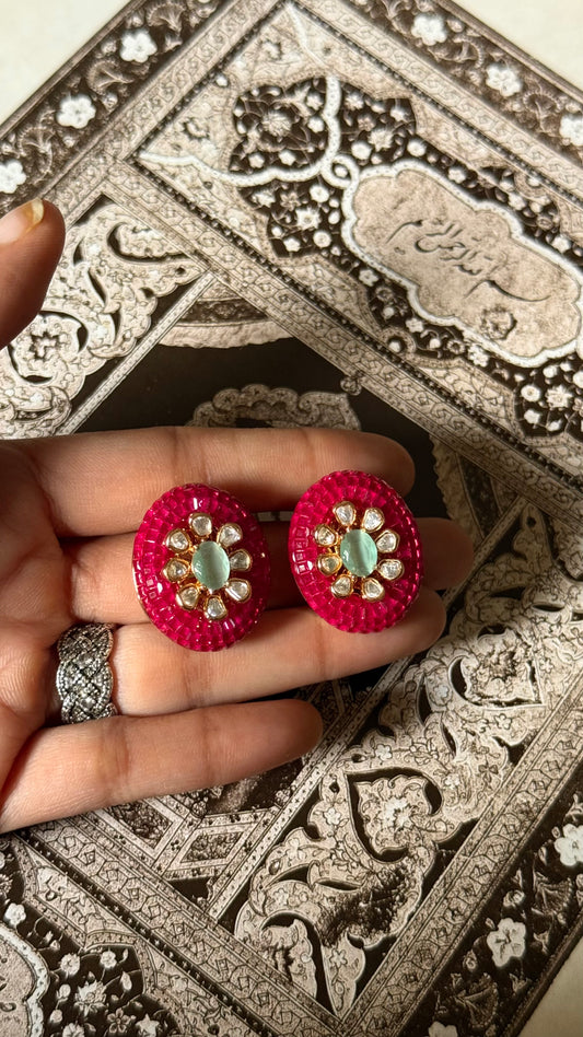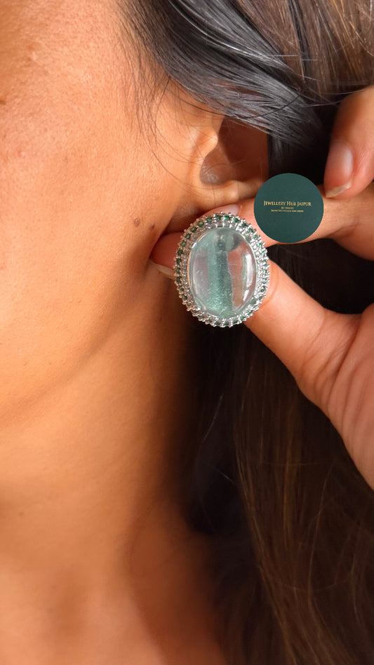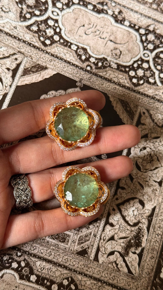 Saffron, mint & rose quartz doublet designer cocktail studs