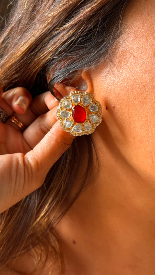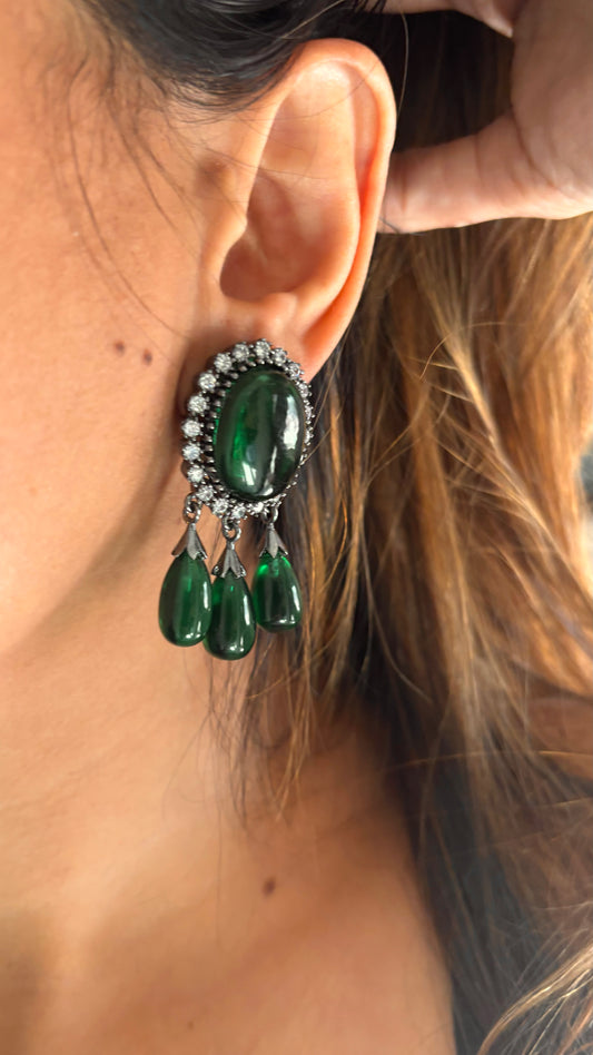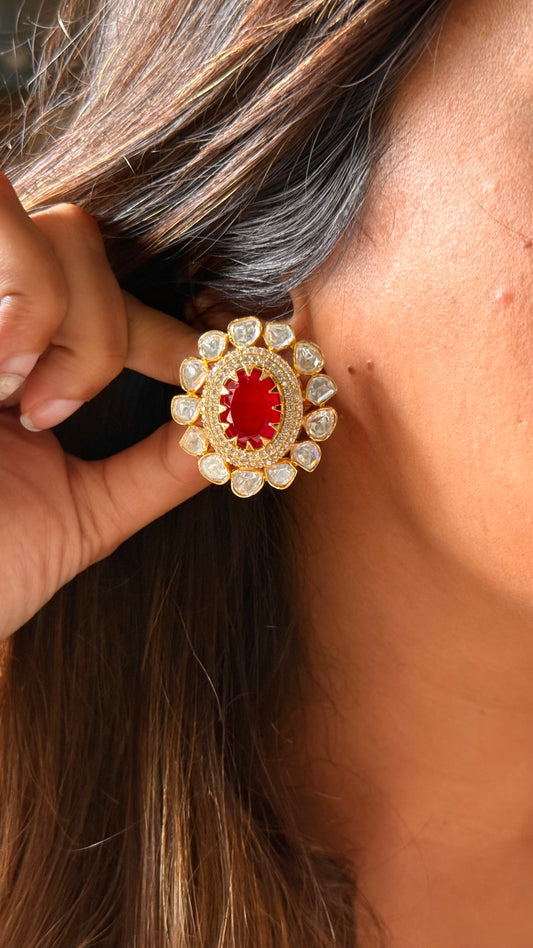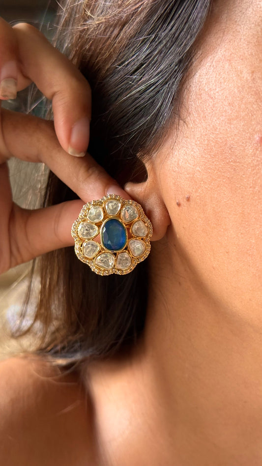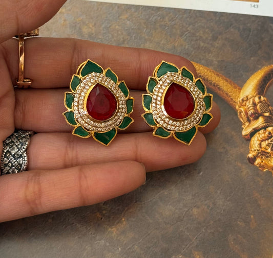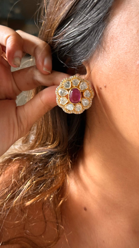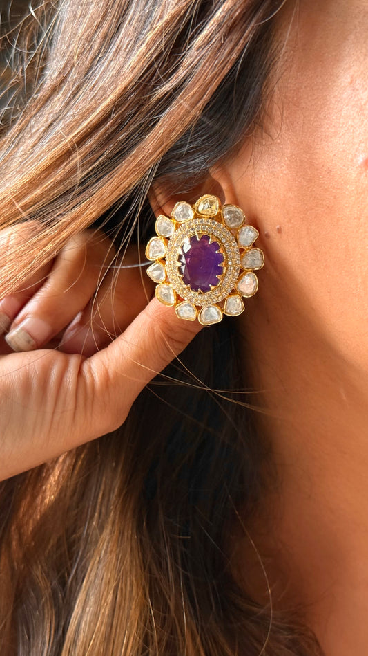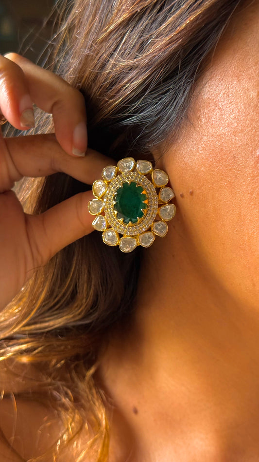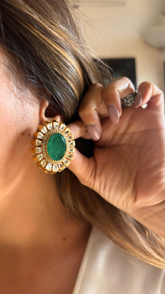 Saffron, mint & rose quartz doublet designer cocktail studs