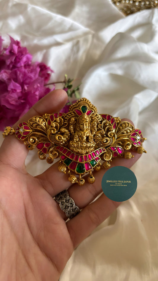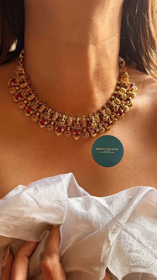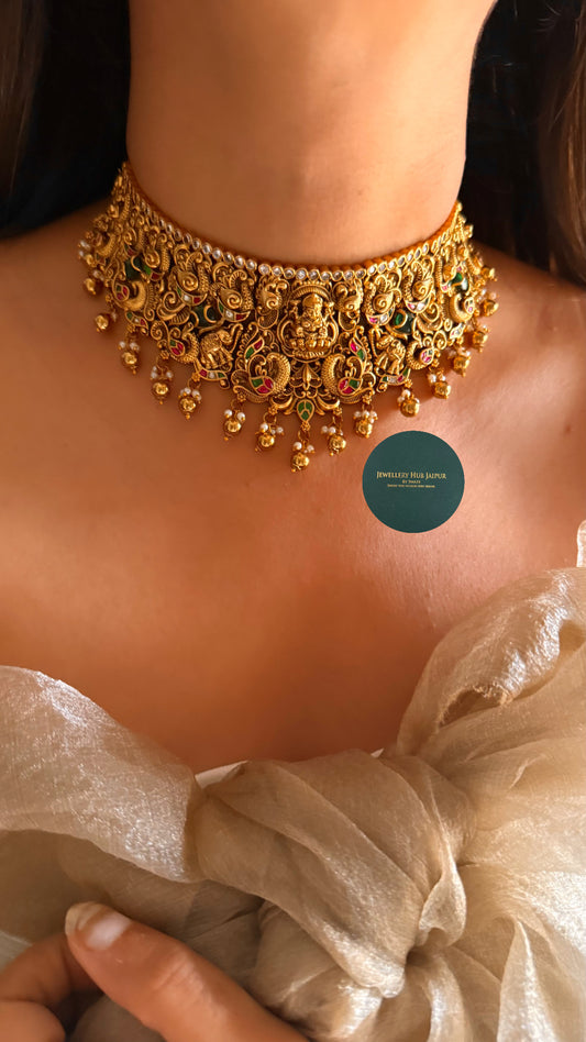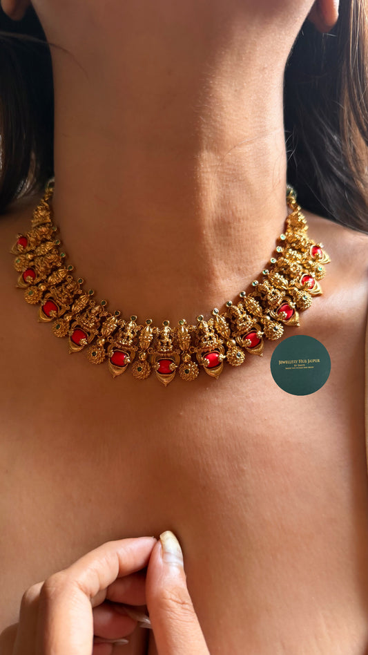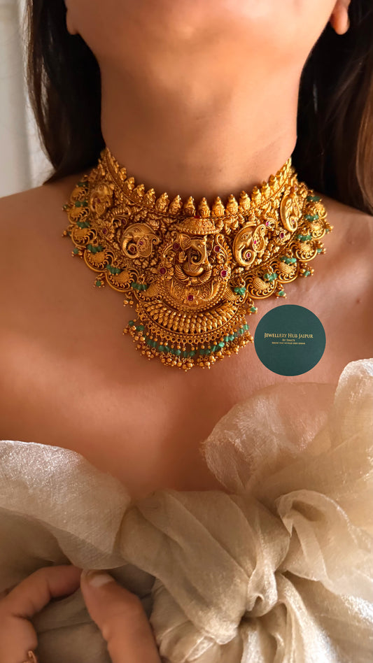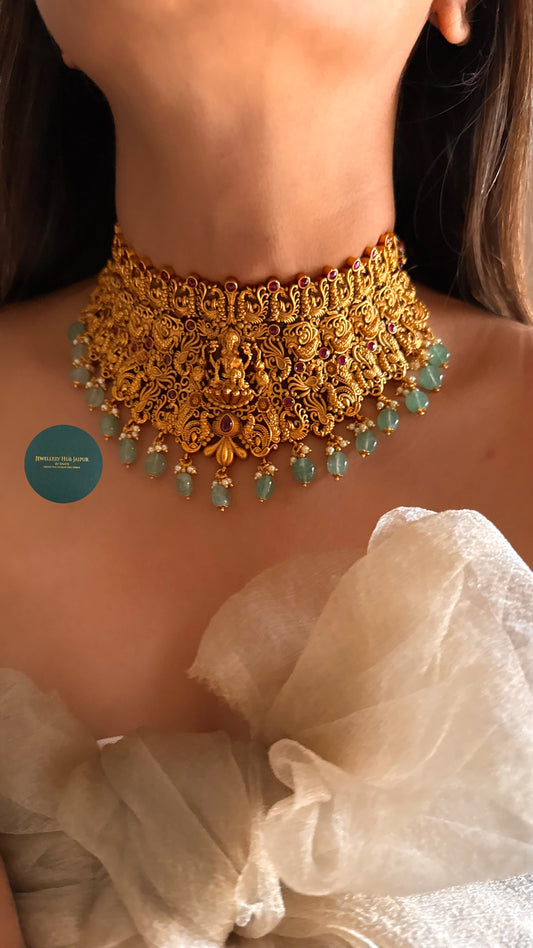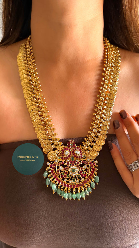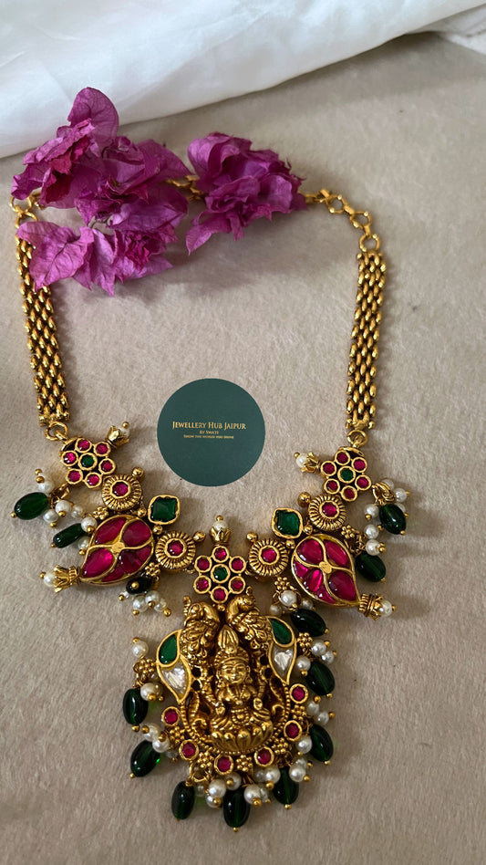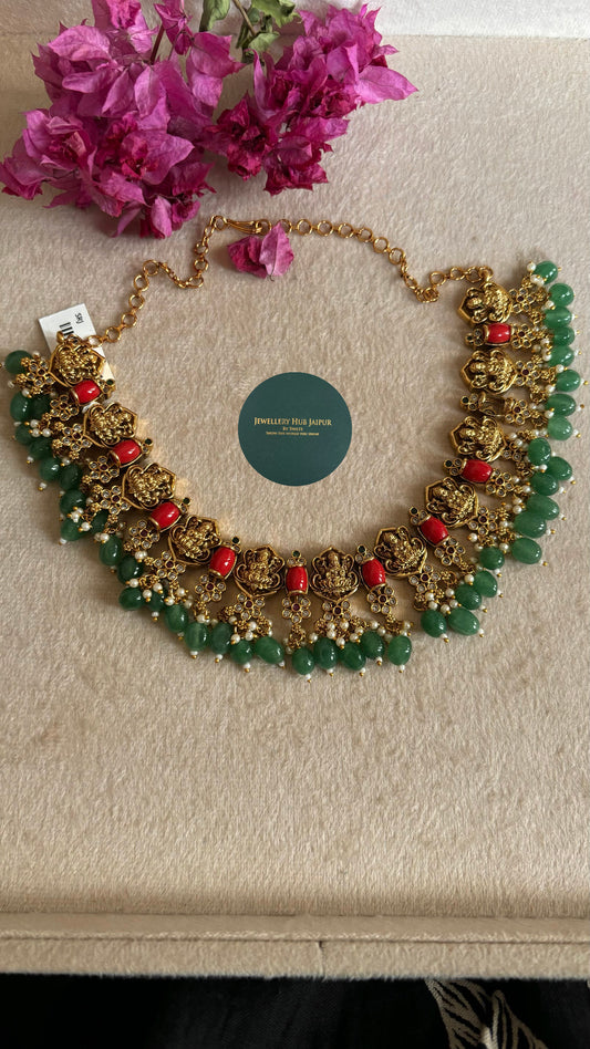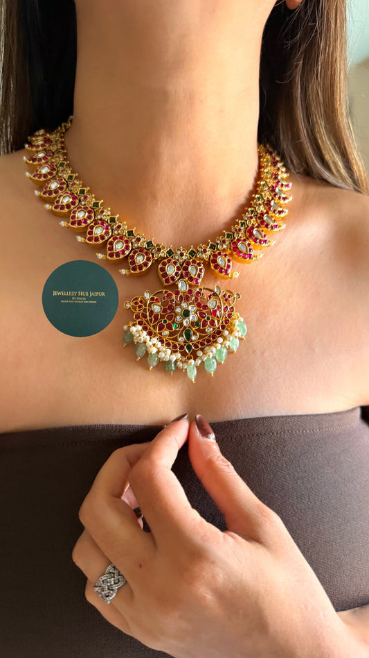 Jahanvi Rani pink & mint keri design temple jewellery set