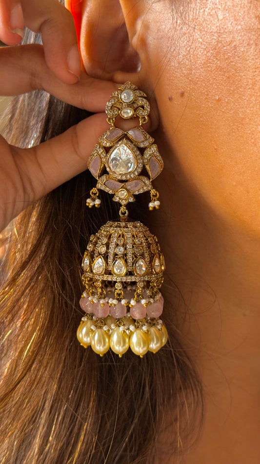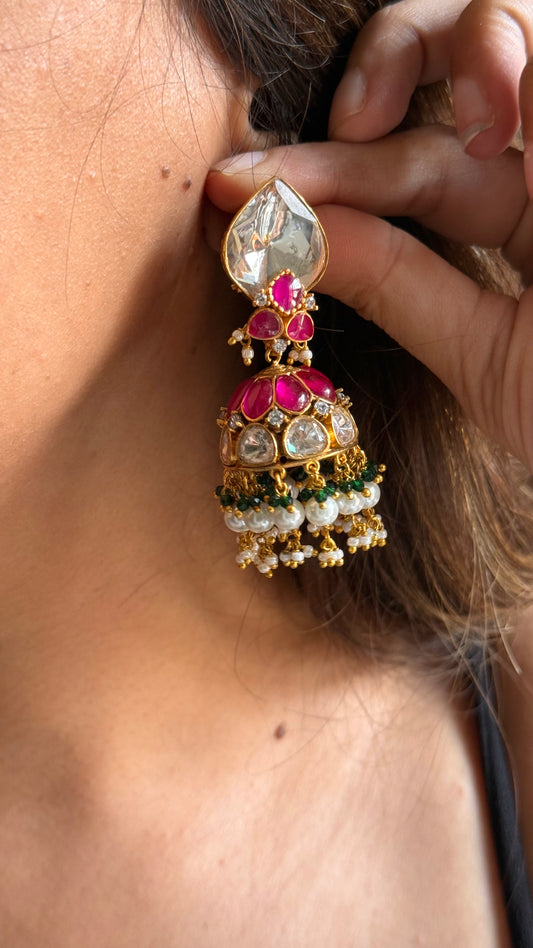 Emerald doublet & moissanite uncut polki Victorian danglers