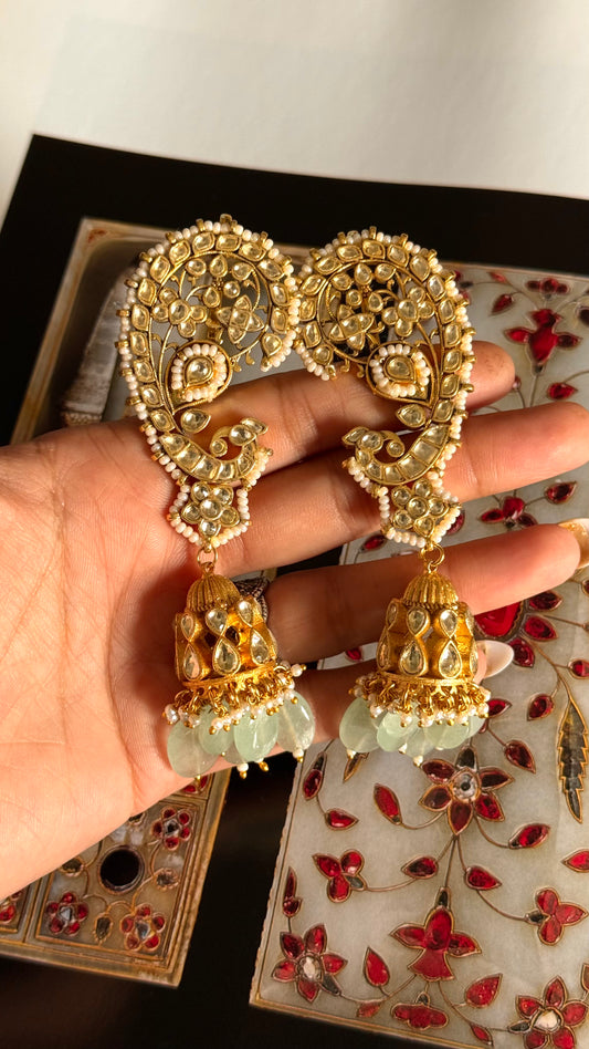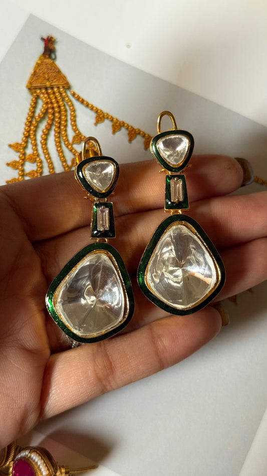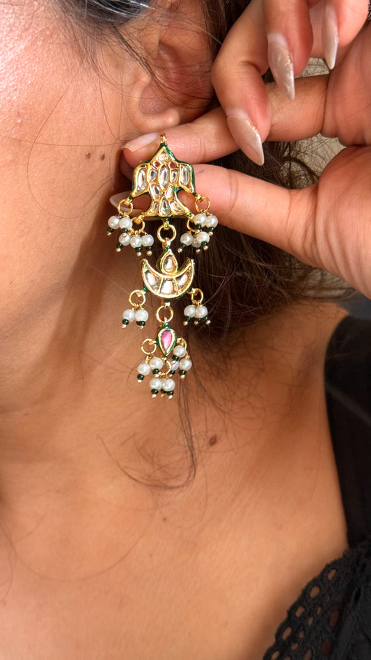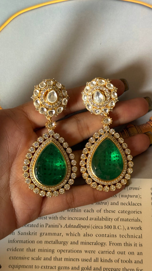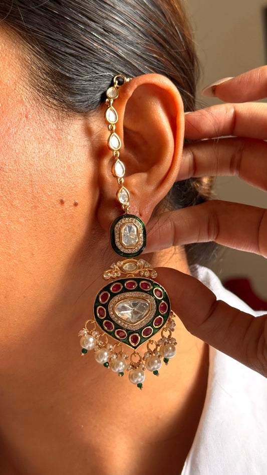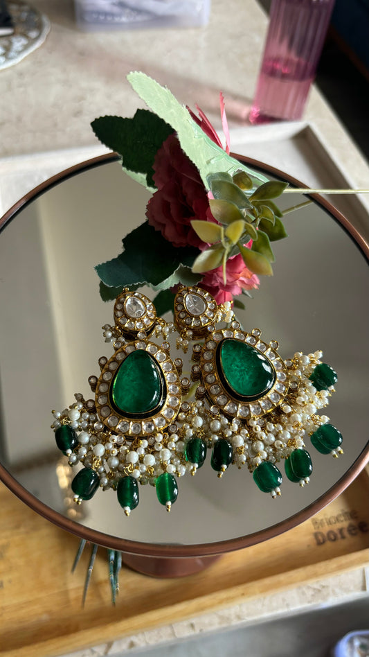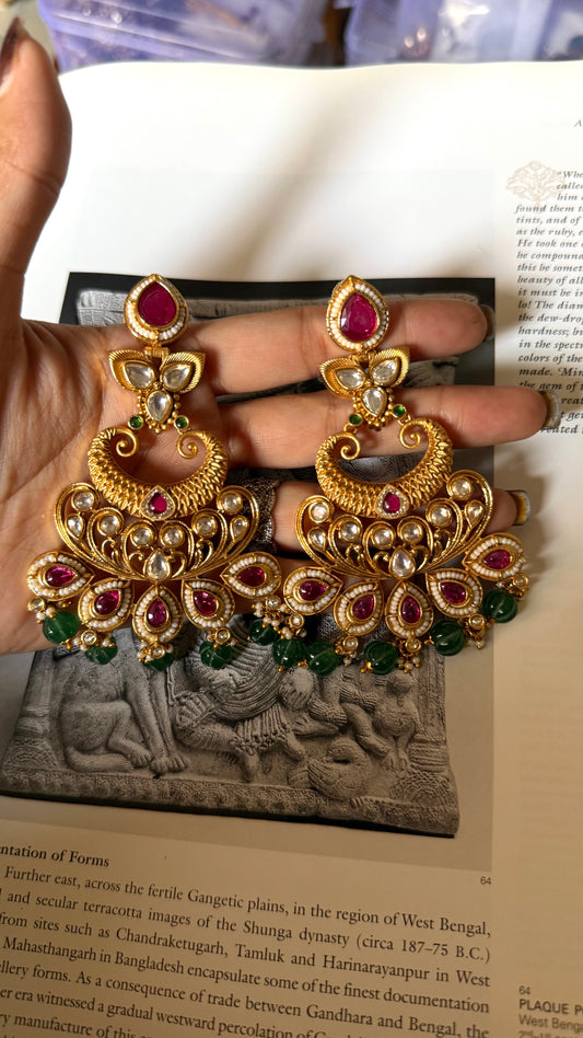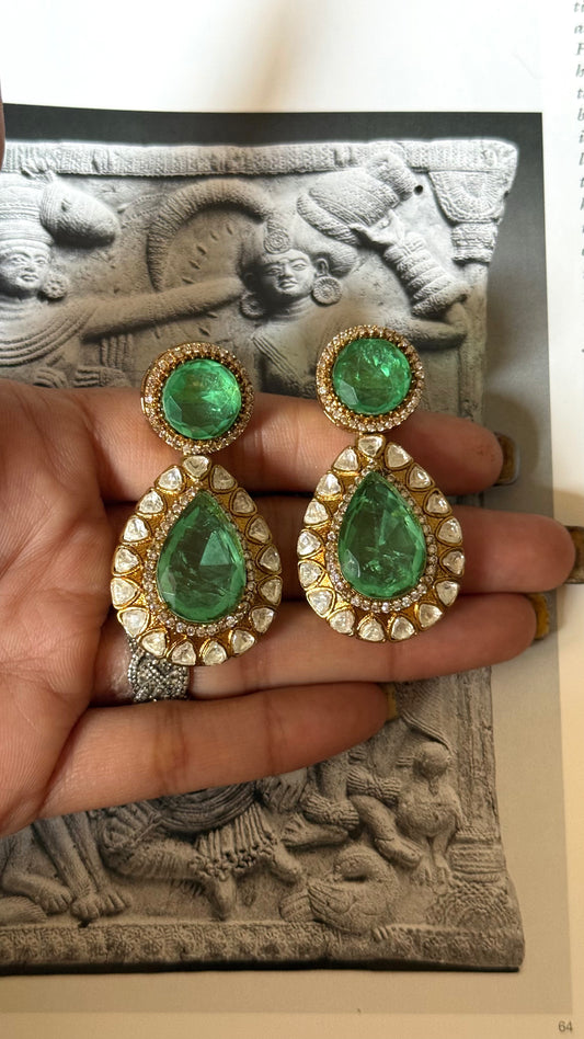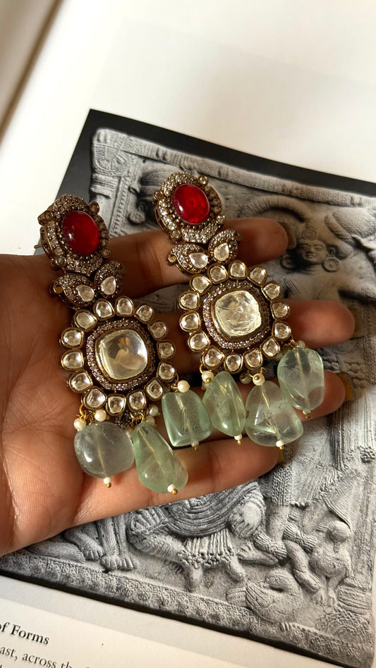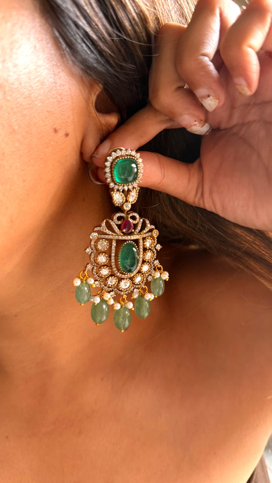 Paachi rani pink & emerald rajwada earrings with mint drop