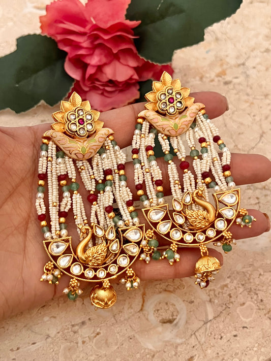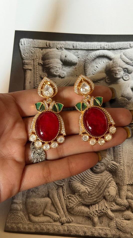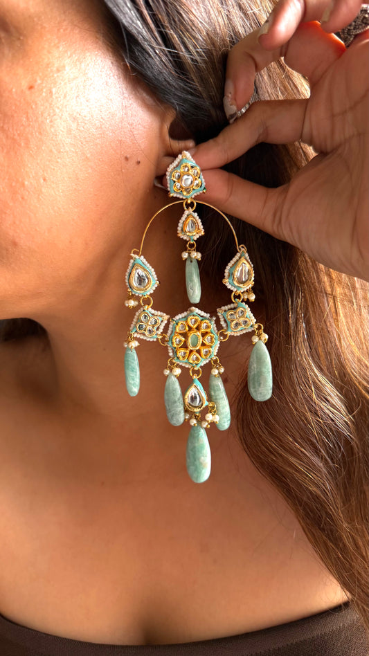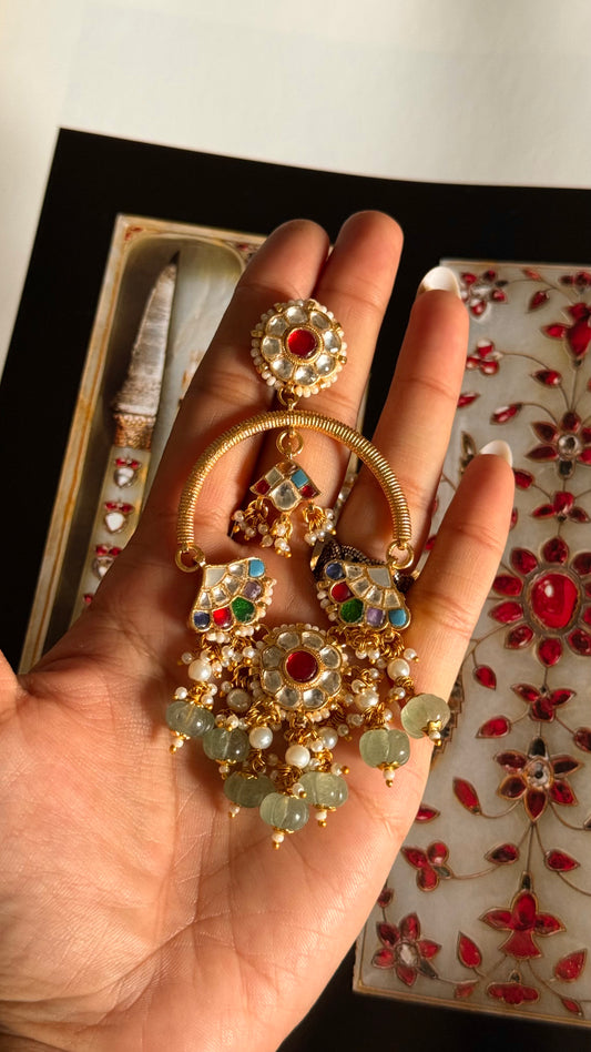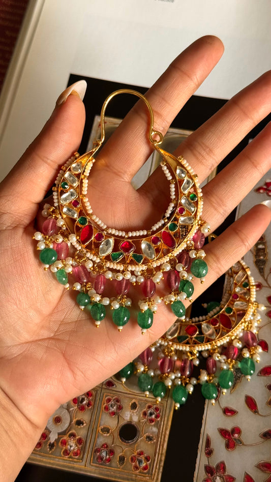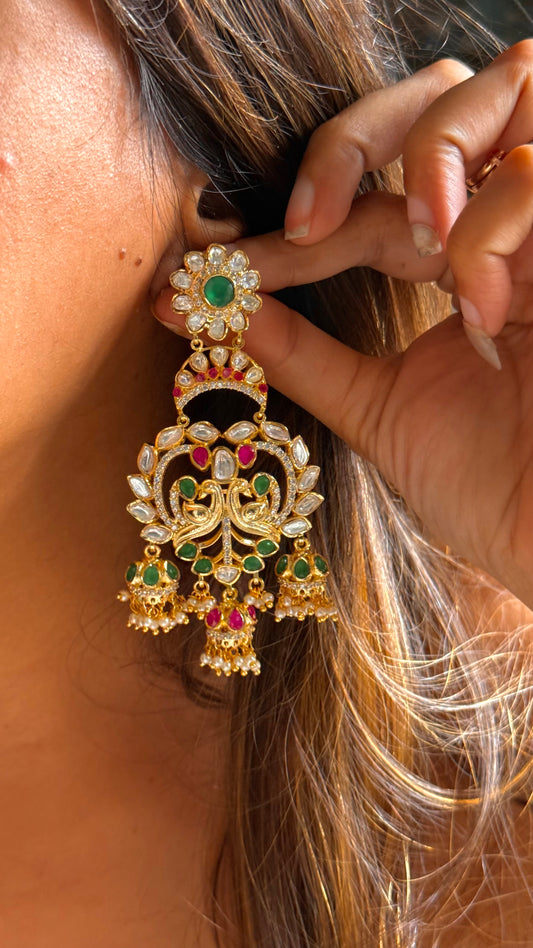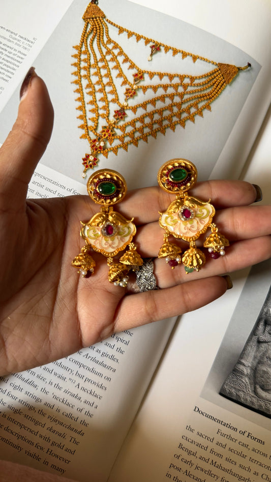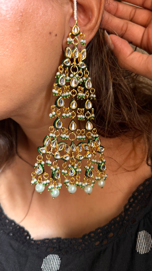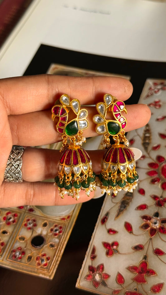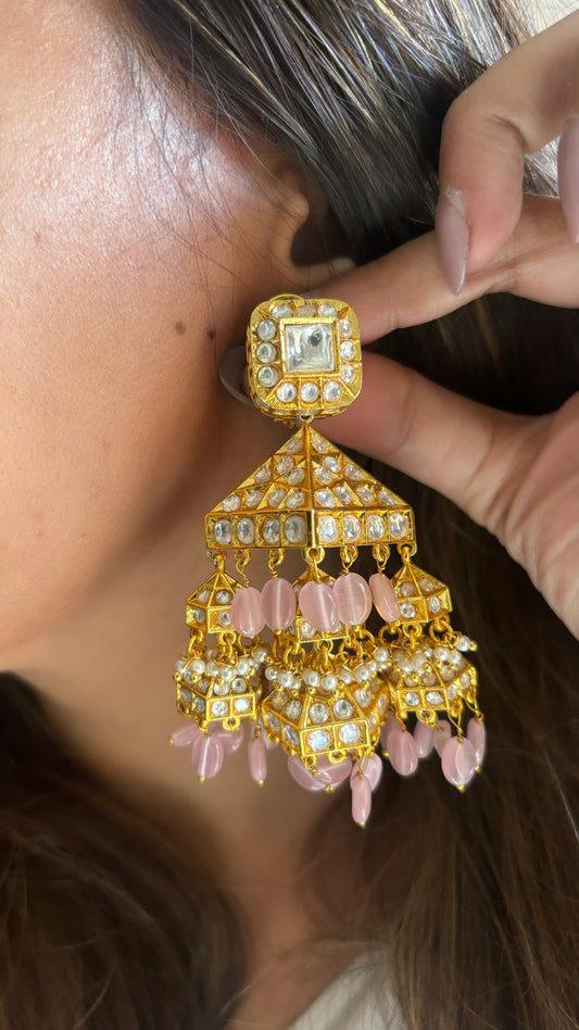 Paachi rani pink & emerald rajwada earrings with mint drop