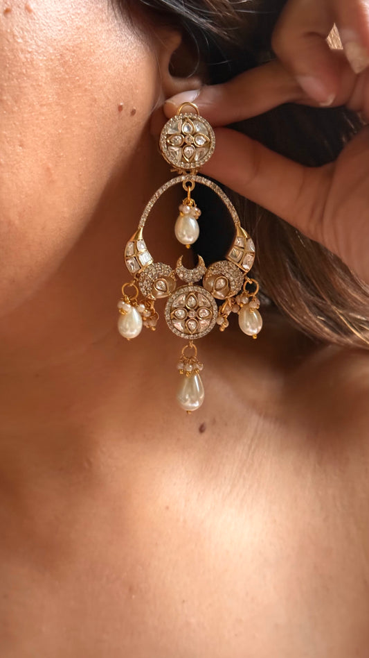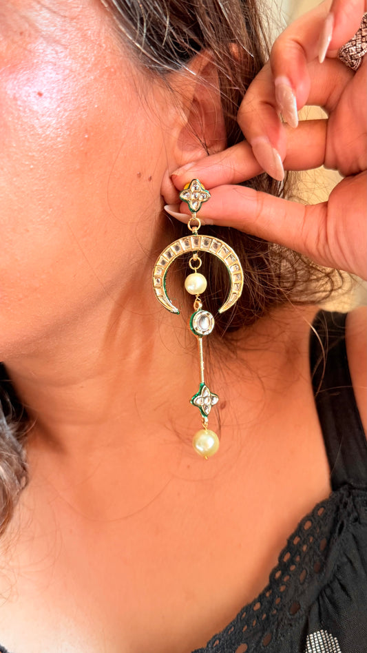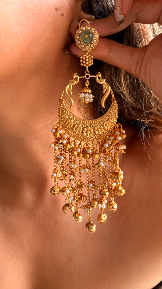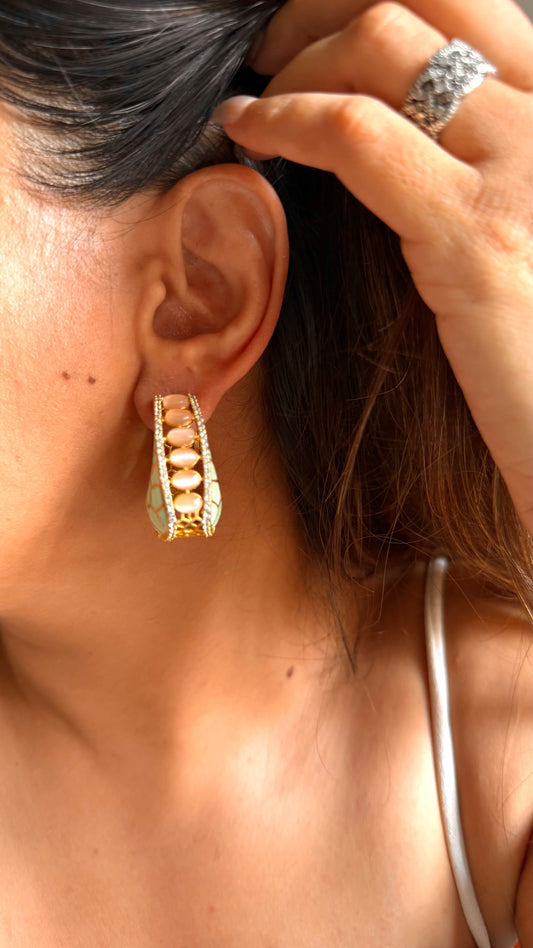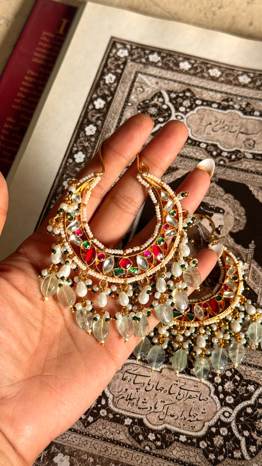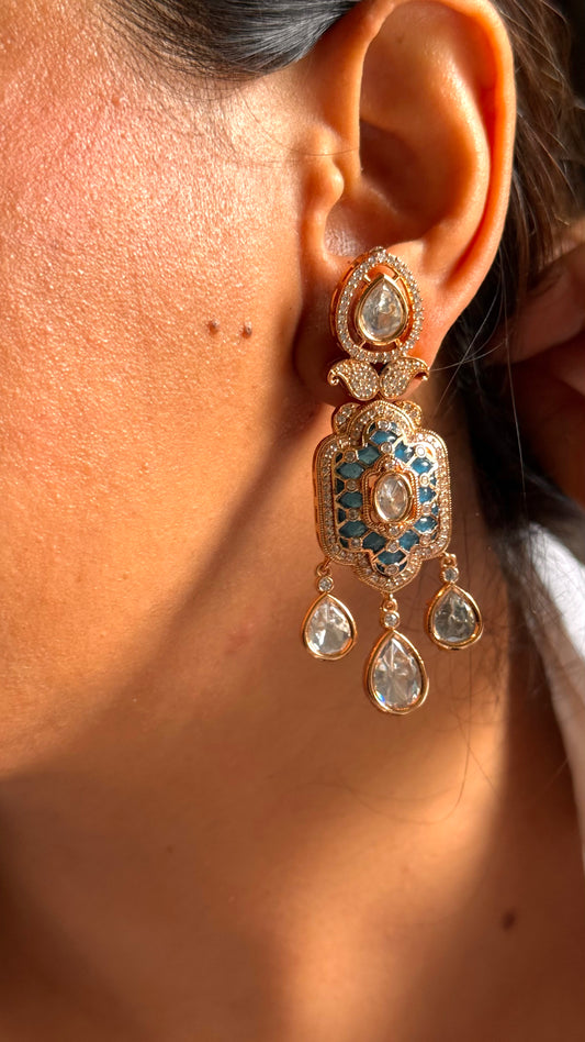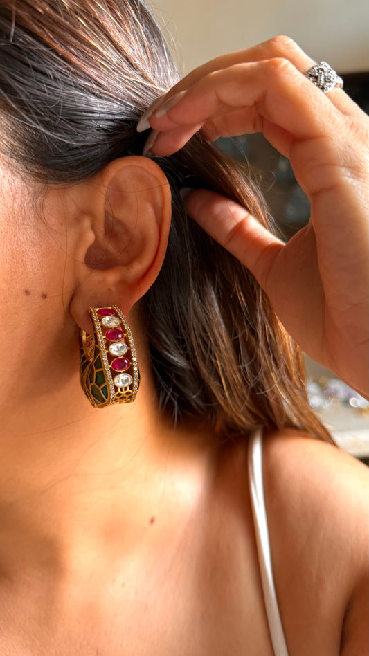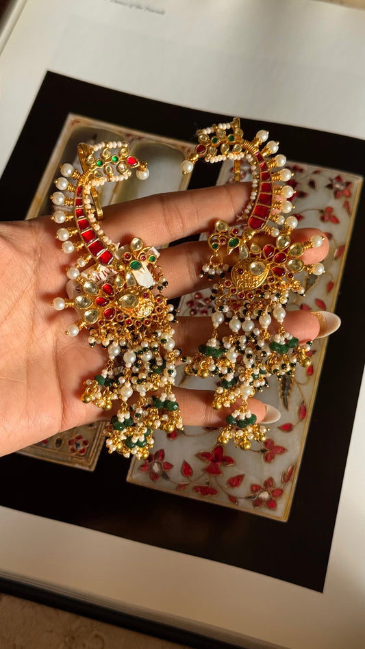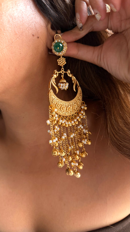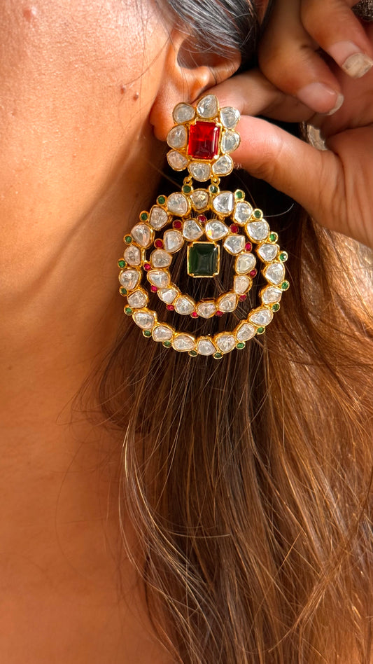Paachi rani pink & emerald rajwada earrings with mint drop