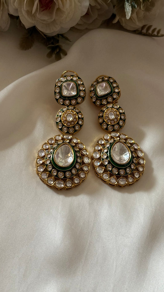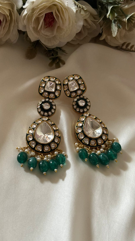 Emerald drops uncut Polki danglers