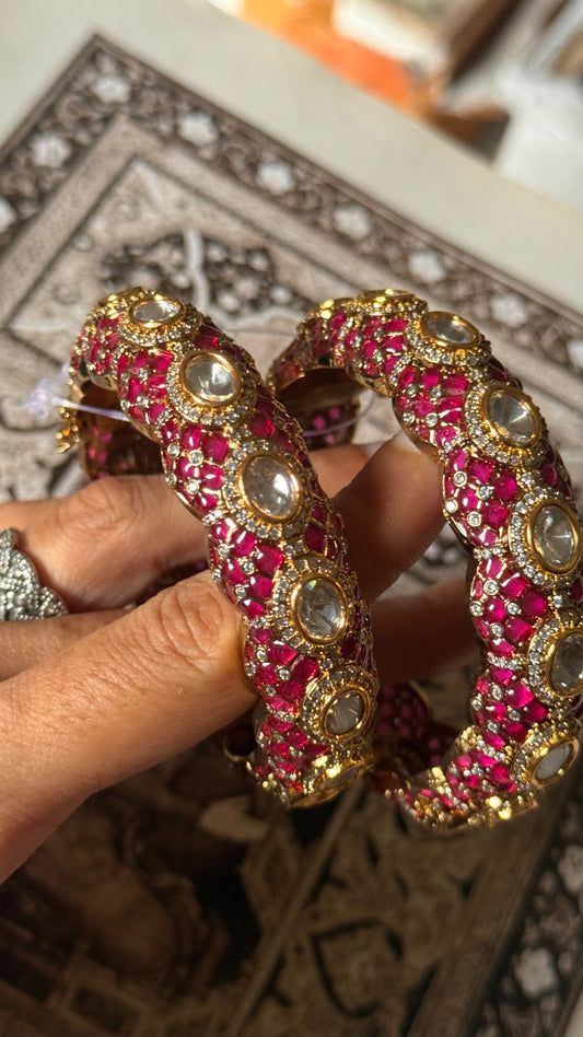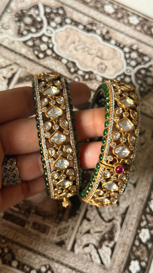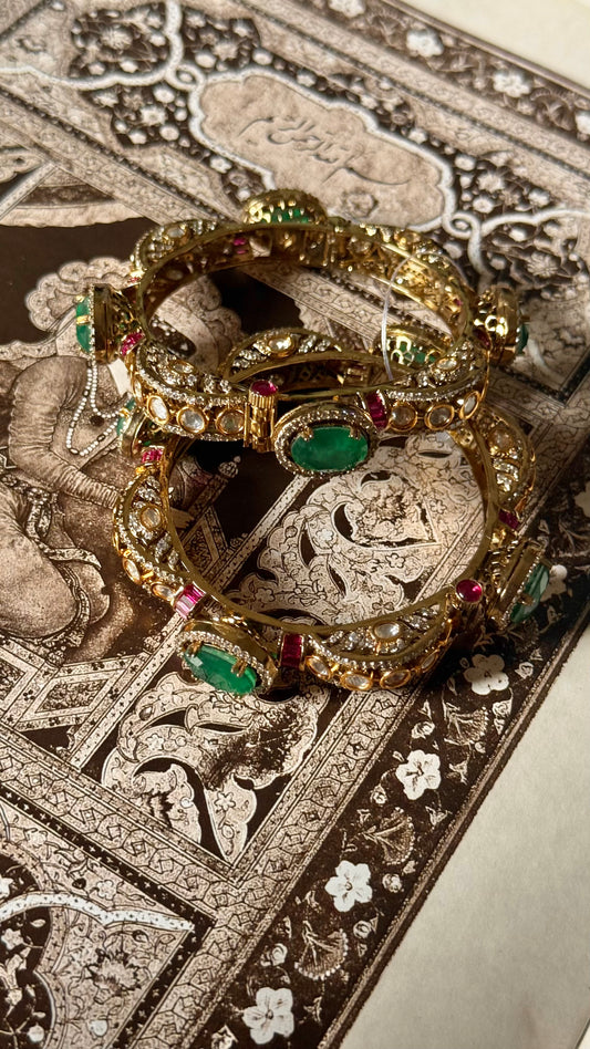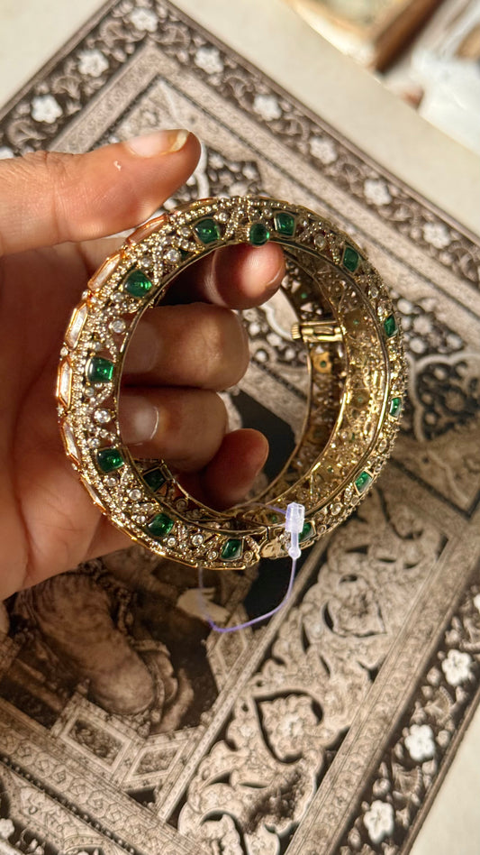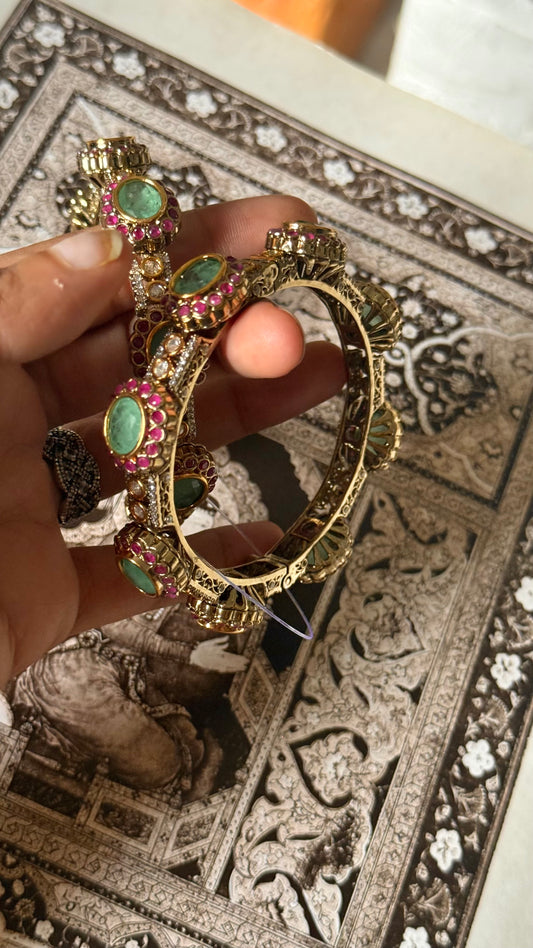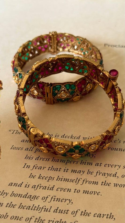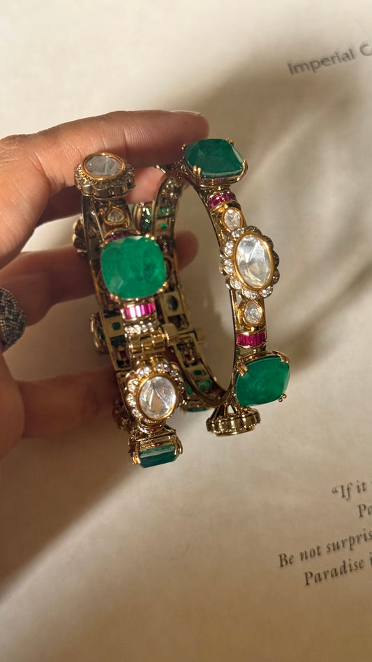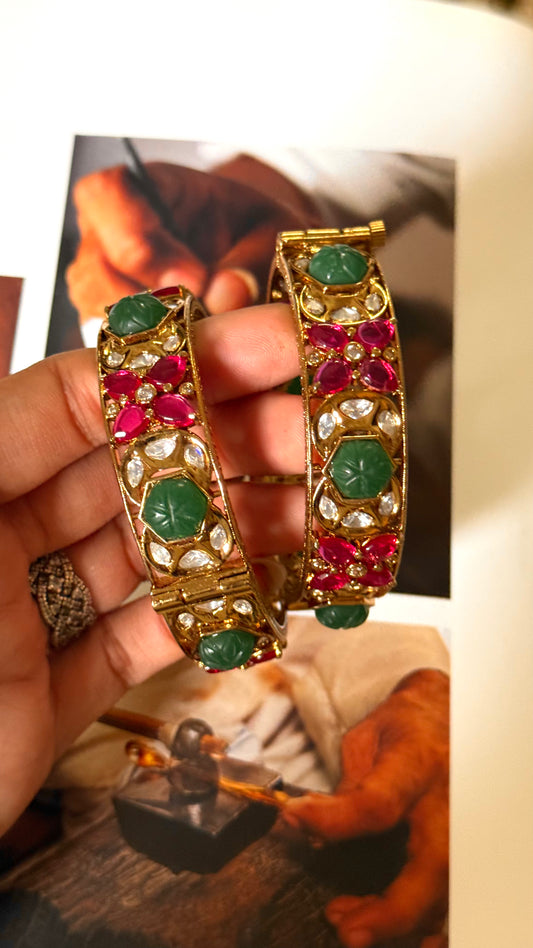 Emerald doublet & rani pink moissanite Victorian openable bangle